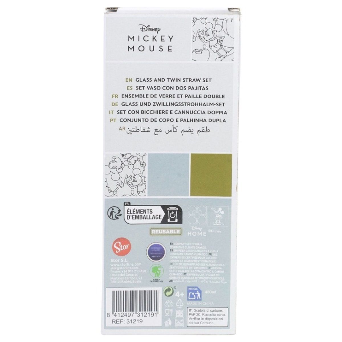 Disney Mickey Mouse Disney Mickey Mouse Glas 480 ml mit 2 Edelstahl Trinkhalmen