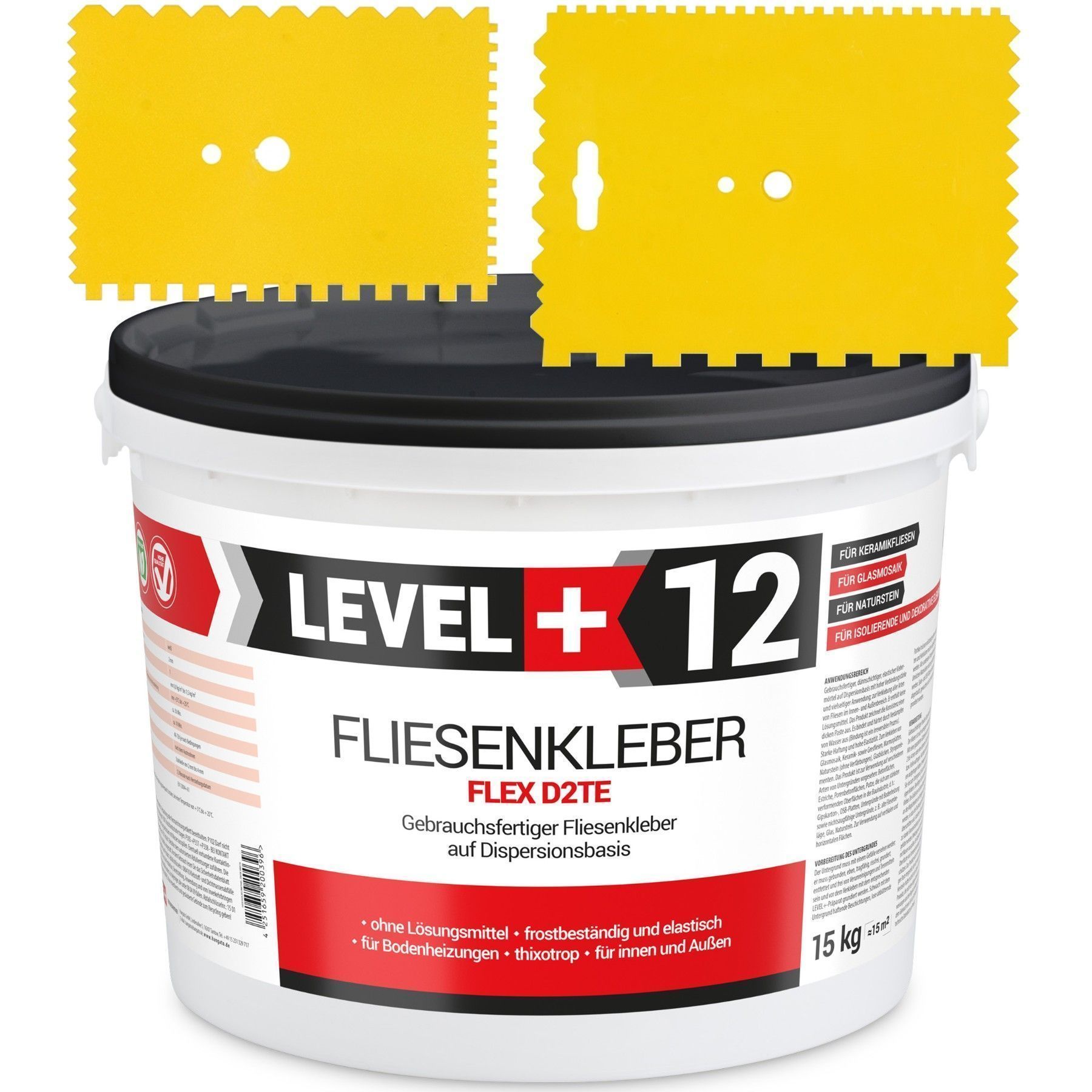 Dispersionkleber 10kg Fertig-Fliesenkleber Flex + 2St. Zahnspachtel SET L+12