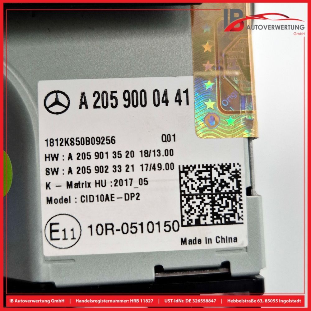 Display Monitor Zentralbildschirm A2059000441 Mercedes C-KLASSE W205 S205 Orig