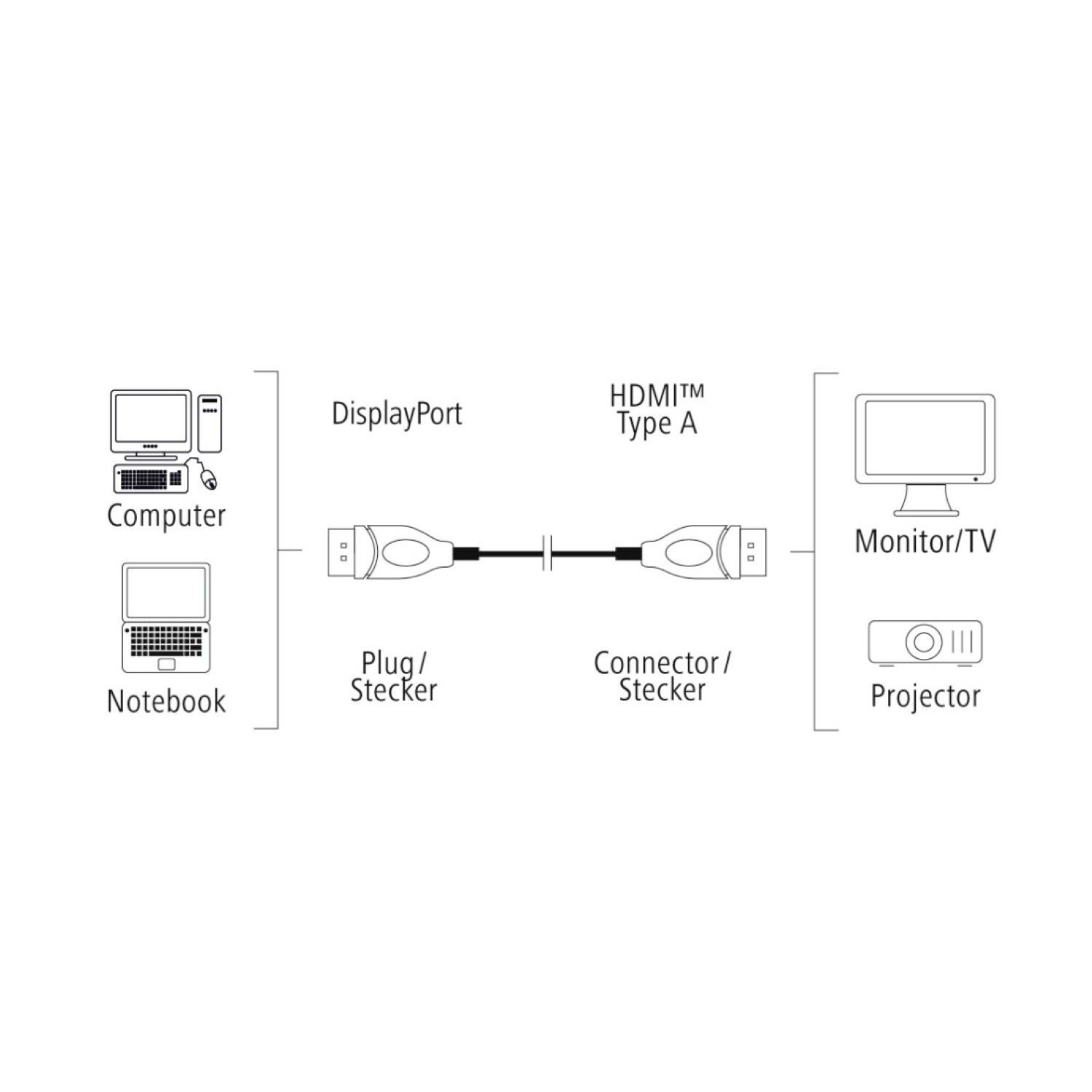 Hama DisplayPort auf HDMI Adapter-Kabel 1,8m 4K Ultra HD