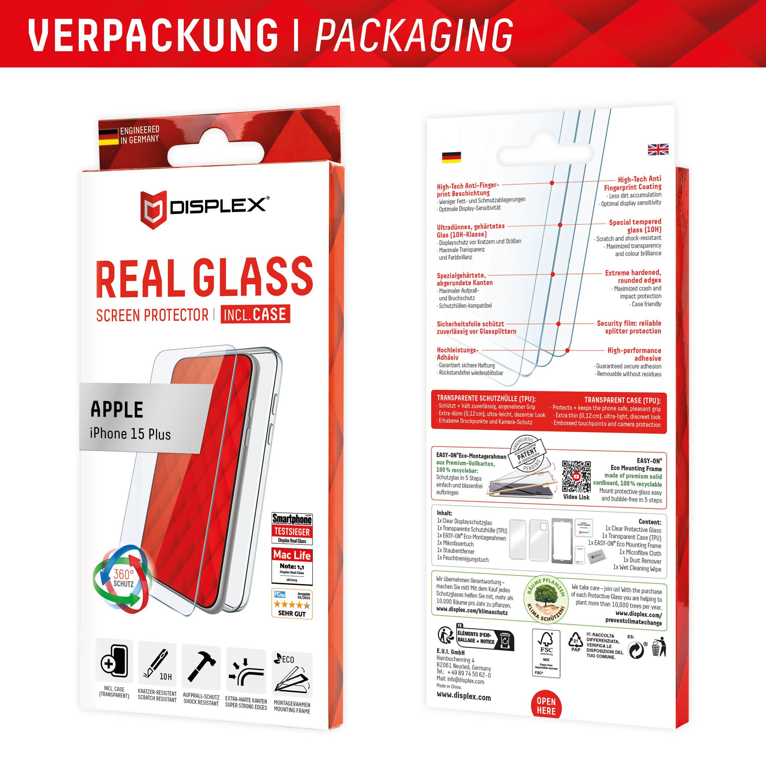 Displex Panzerglas 10H inklusive Handyhülle transparent für iPhone 15 Max