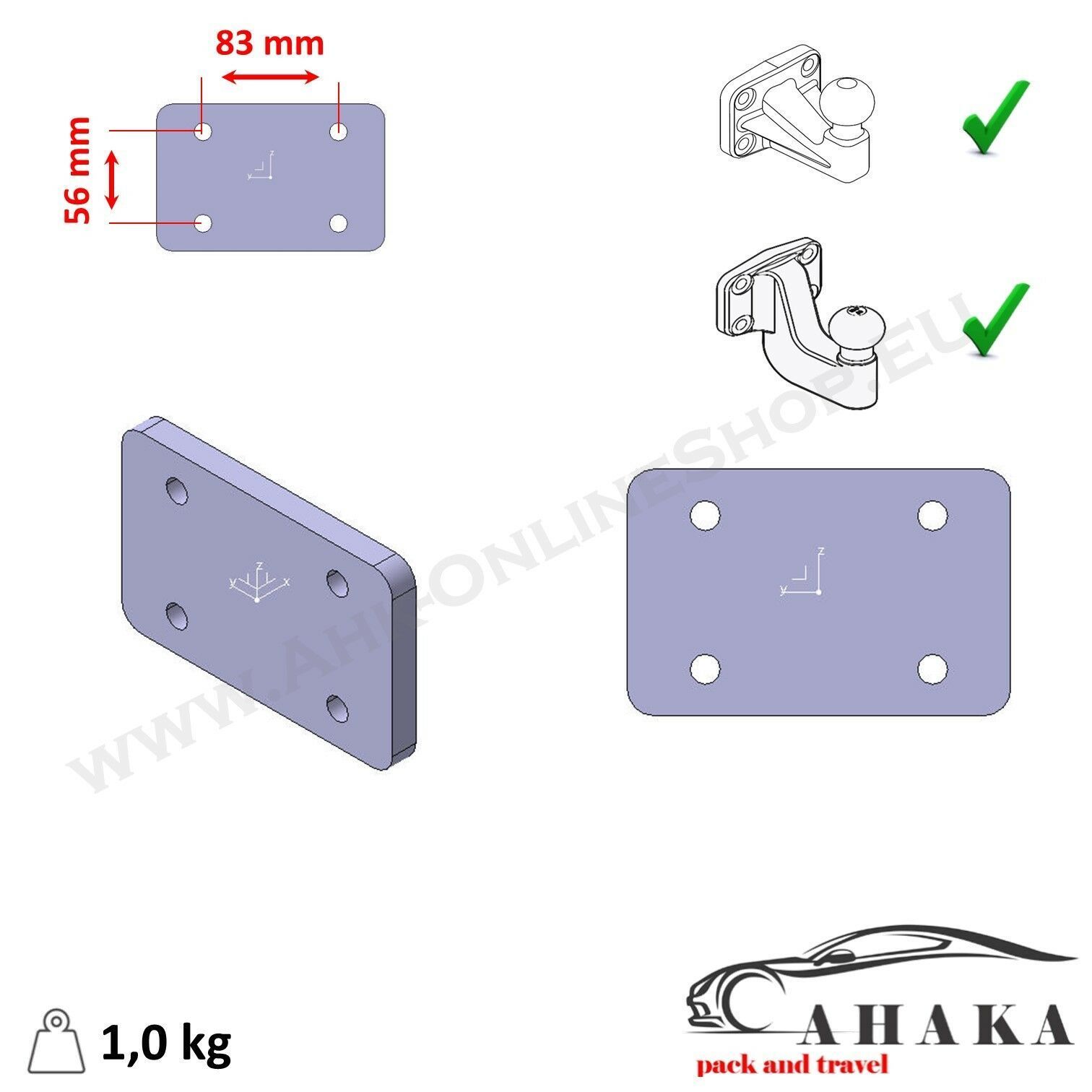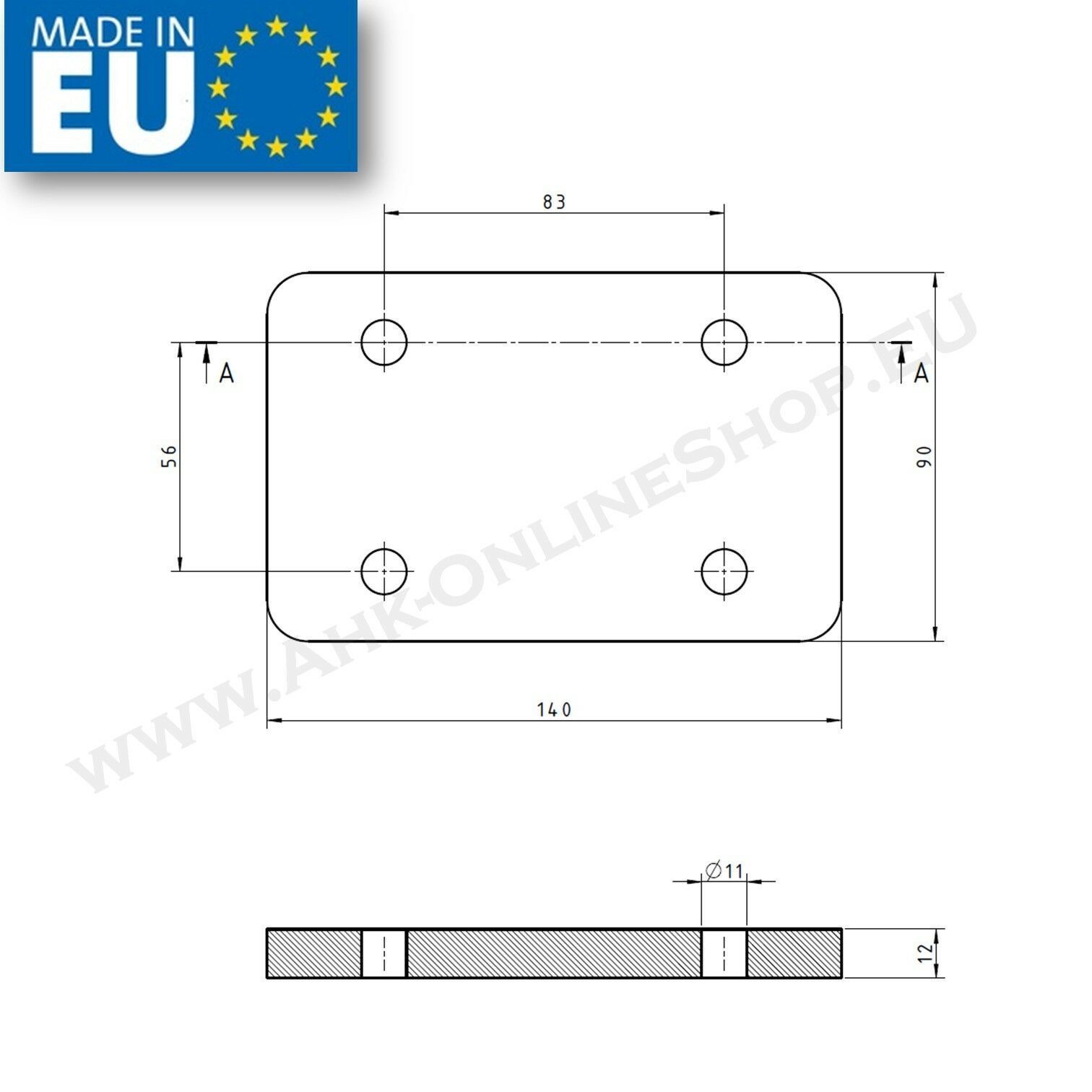 Distanzblech 12 mm für Anhängerkupplung Flanschkugel Anhängebock 83 x 56 mm
