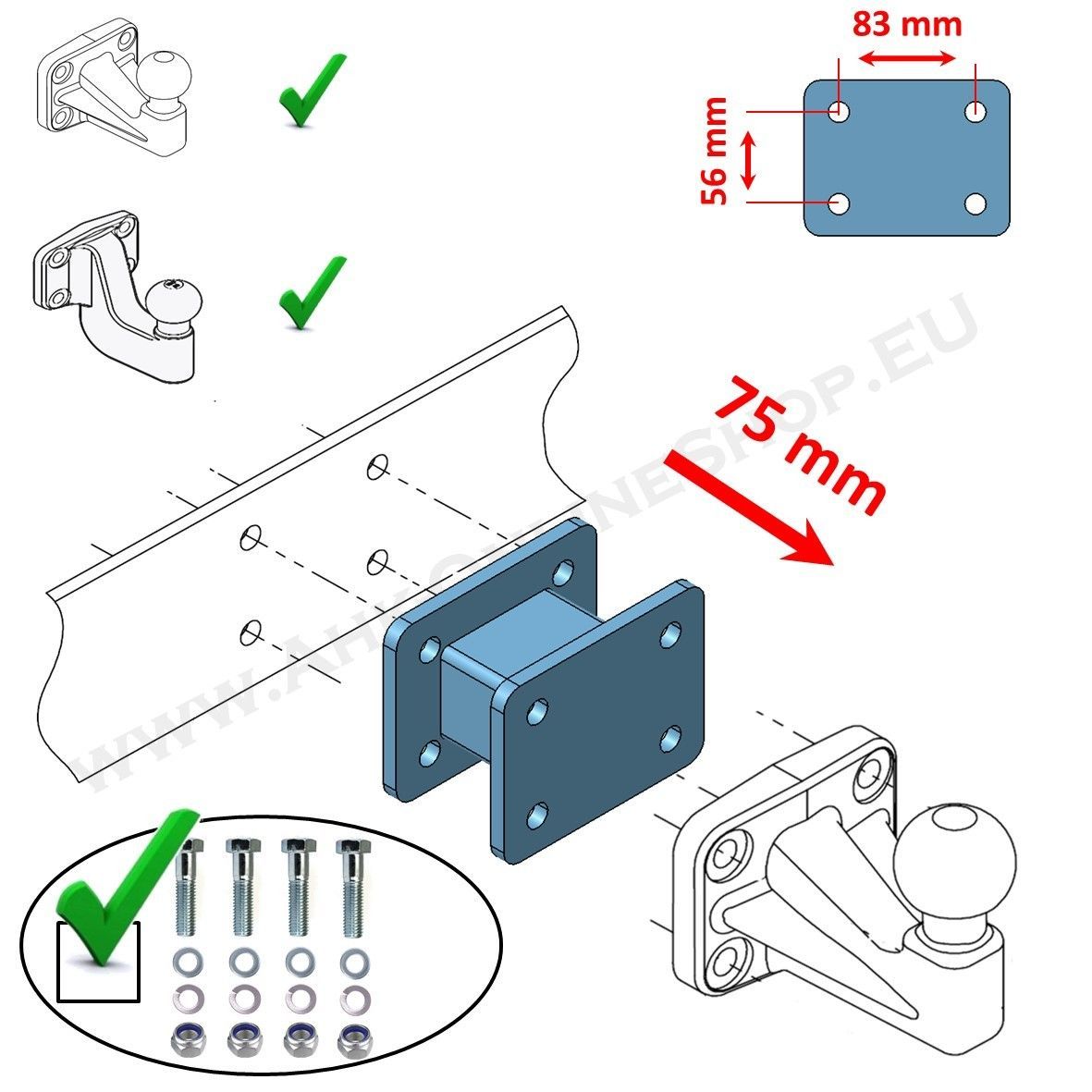 Distanzblech 75 mm für Anhängerkupplung Flanschkugel Anhängebock 83 x 56 mm