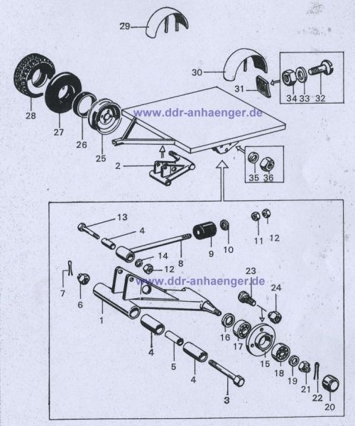 mit 190 mm Schwingarm für DDR Anhänger HP - Modelle