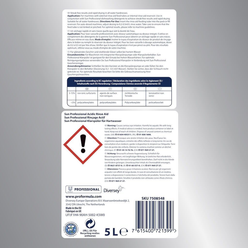 Diversey Sun Pro Formula Acidic Rinse aid Klarspüler 5 Liter