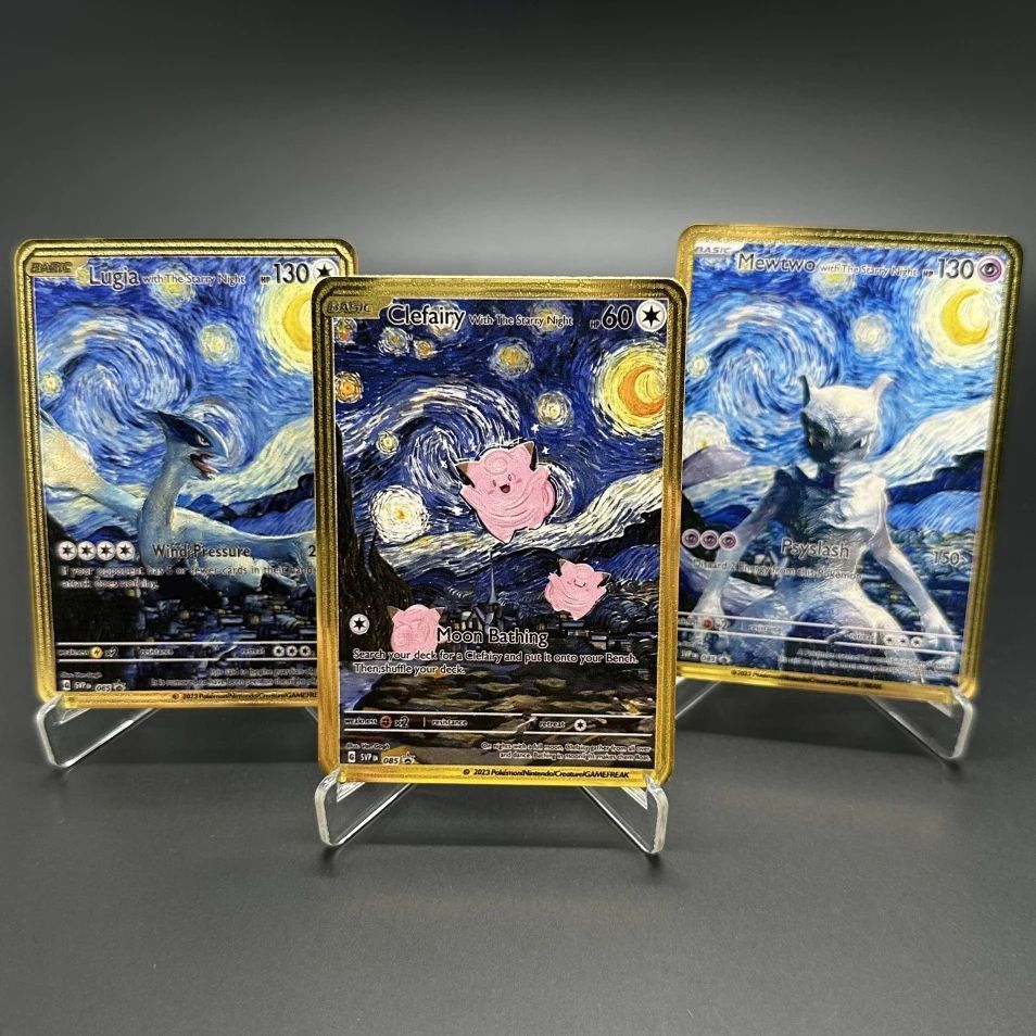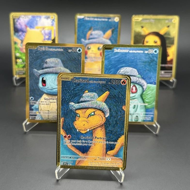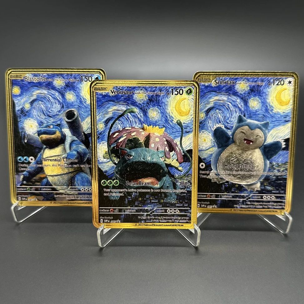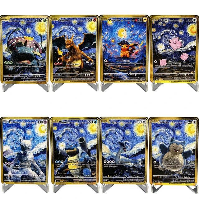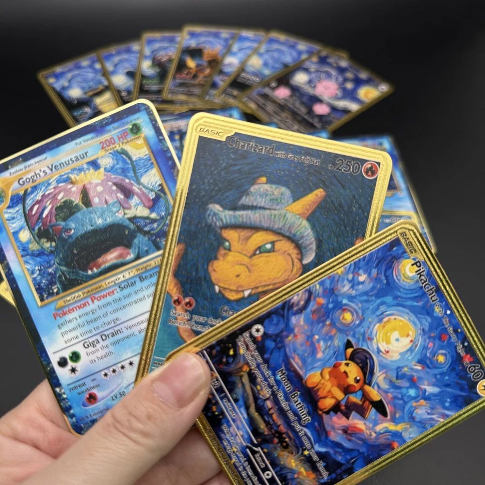 DIY Metall Pokmon Karten Pikachu Charizard Van Gogh Museum Sammelkarten Geschenk