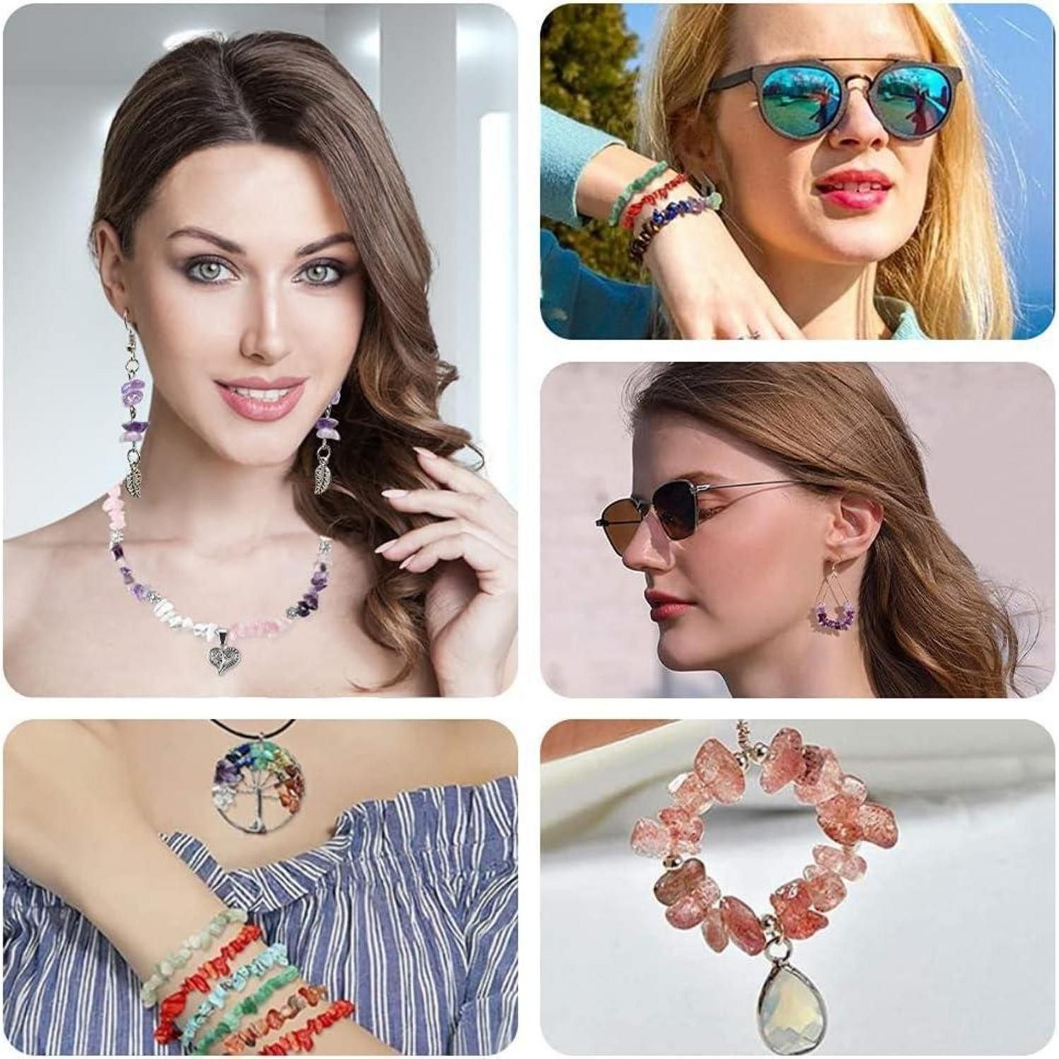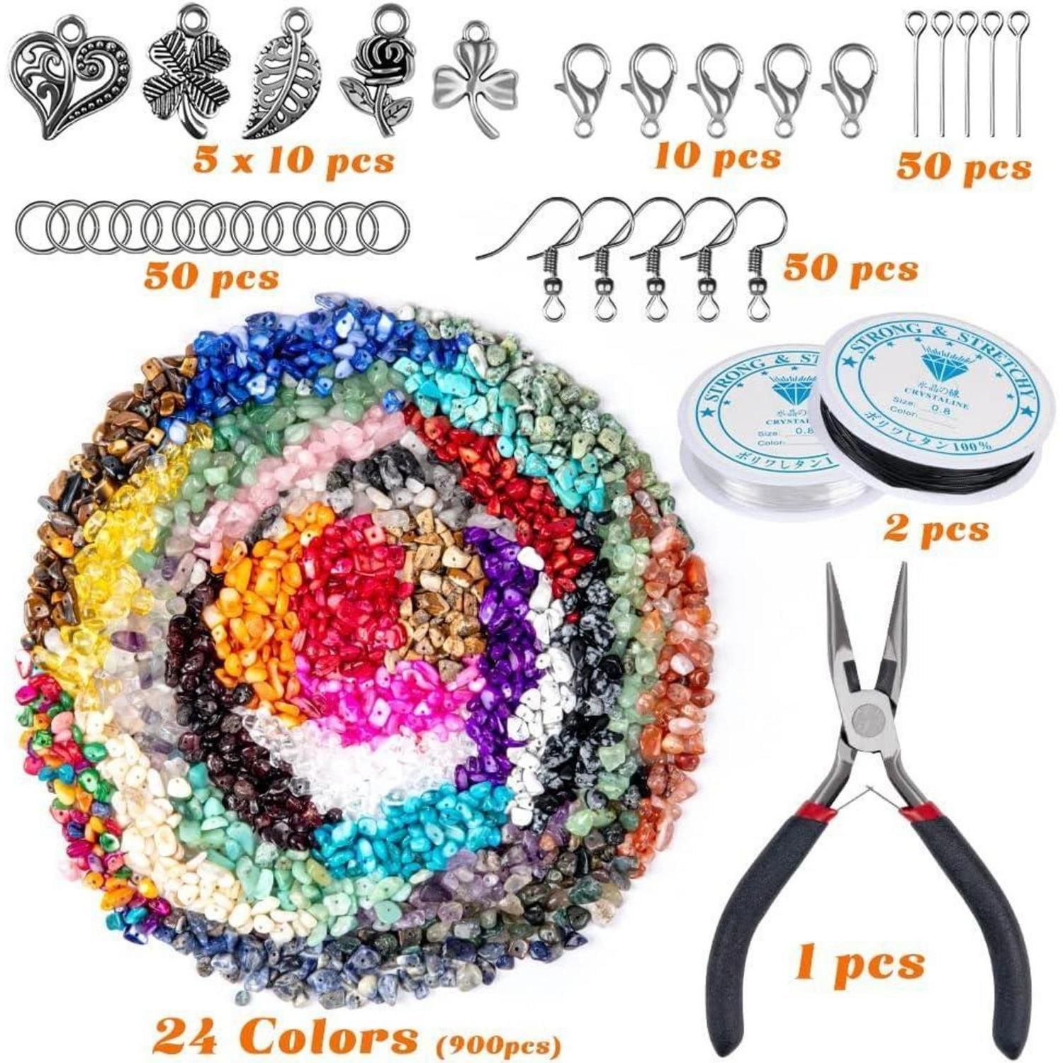 DIY Schmuck Bastelset 24 Farben Naturstein Perlen 5-7 mm 1073 Stück Ringe