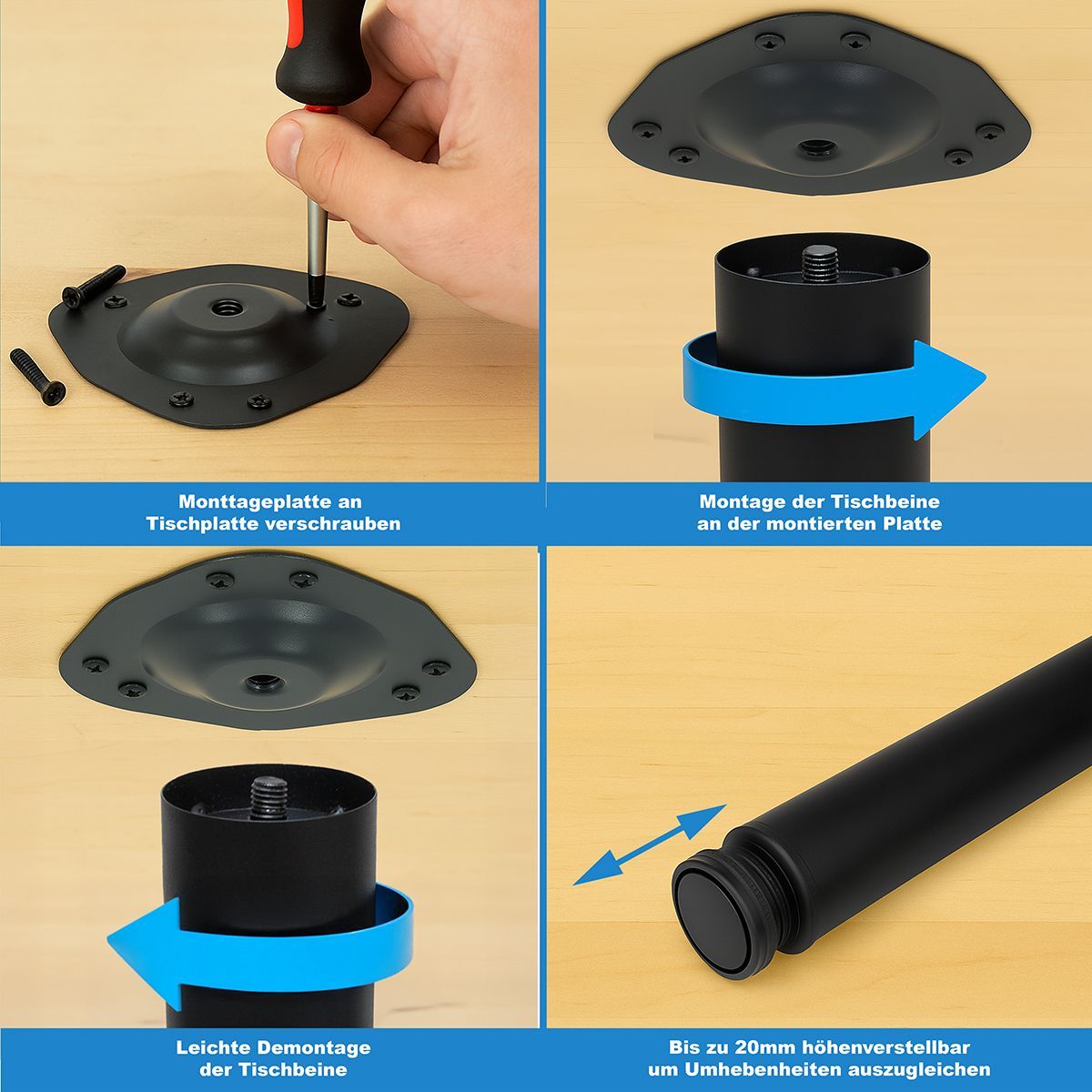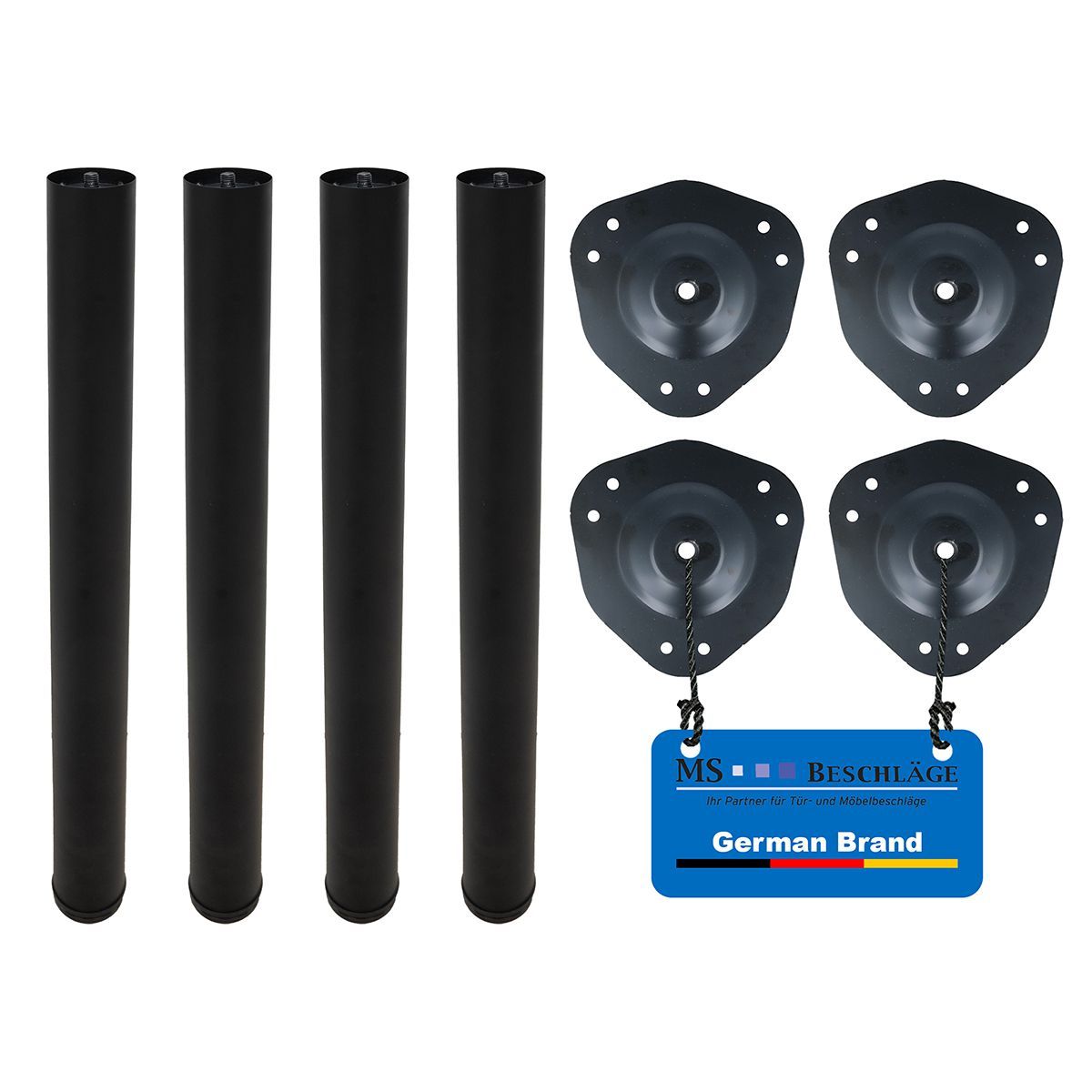 DIY Tischbeine 710mm Schwarz matt - Metall Ø60mm - 4er Set Möbelfüße verstellbar