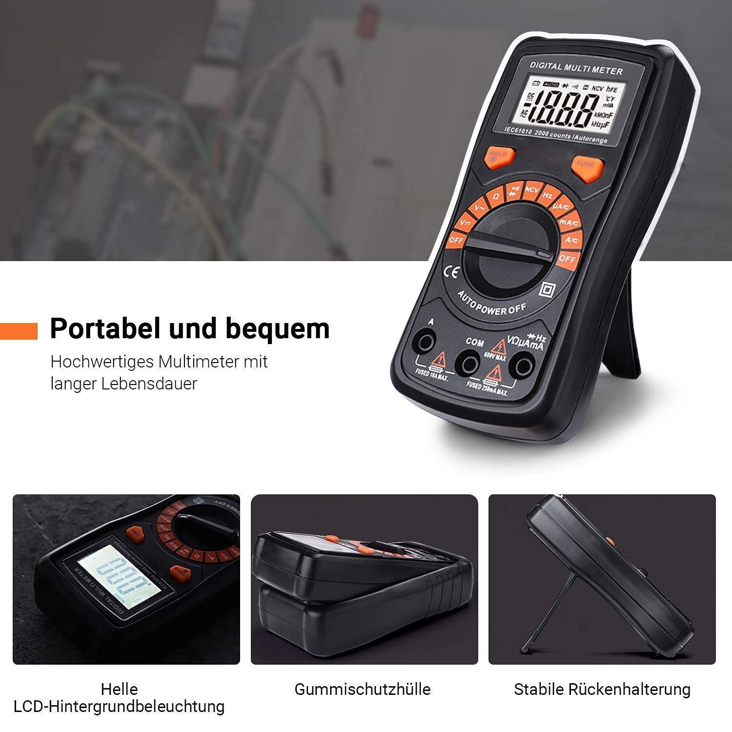 TACKLIFE DM02A, Digital Multimeter Automatisch , mit Berührungslose Spannungserkennung, beleuchtetem LCD-Display, Spannungs-, Strom- und Durchgangsprüfung, für Zuhause und Schule