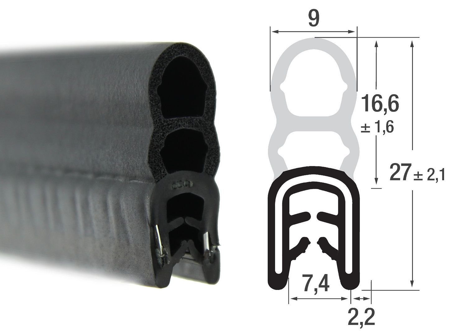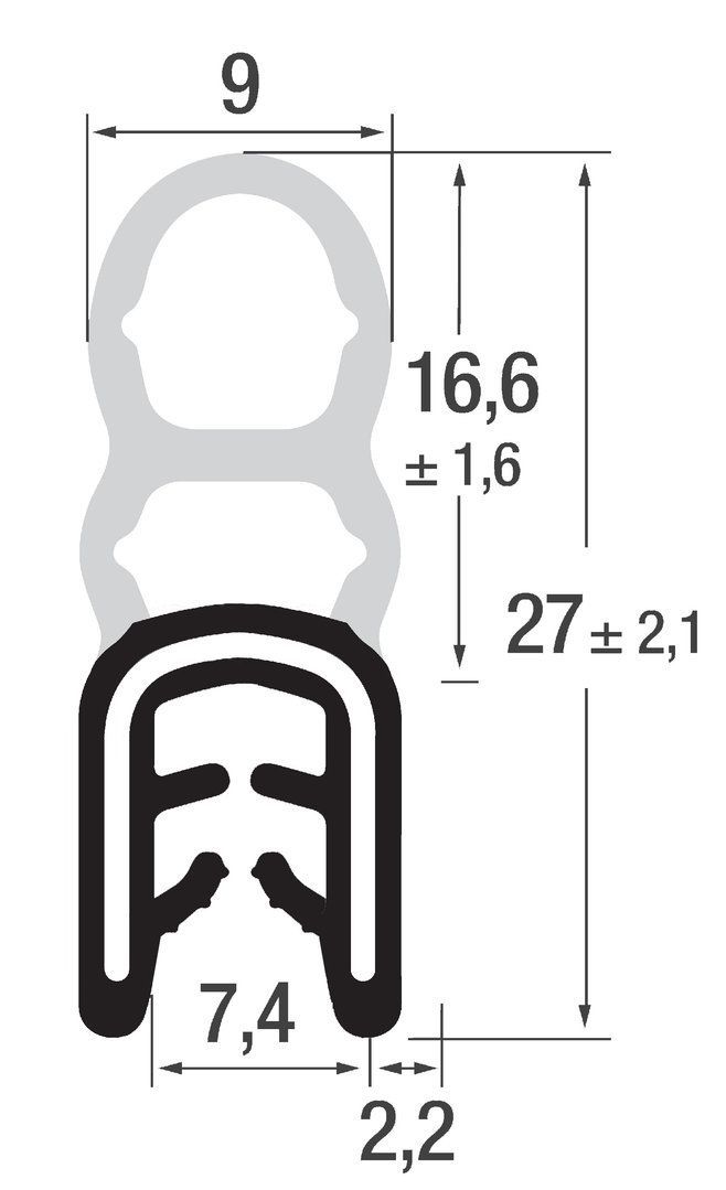 DO24 - EPDM Kantenschutz Dichtungs Profil Gummi Dichtung oben - Klemmbereich 3 - 4 mm