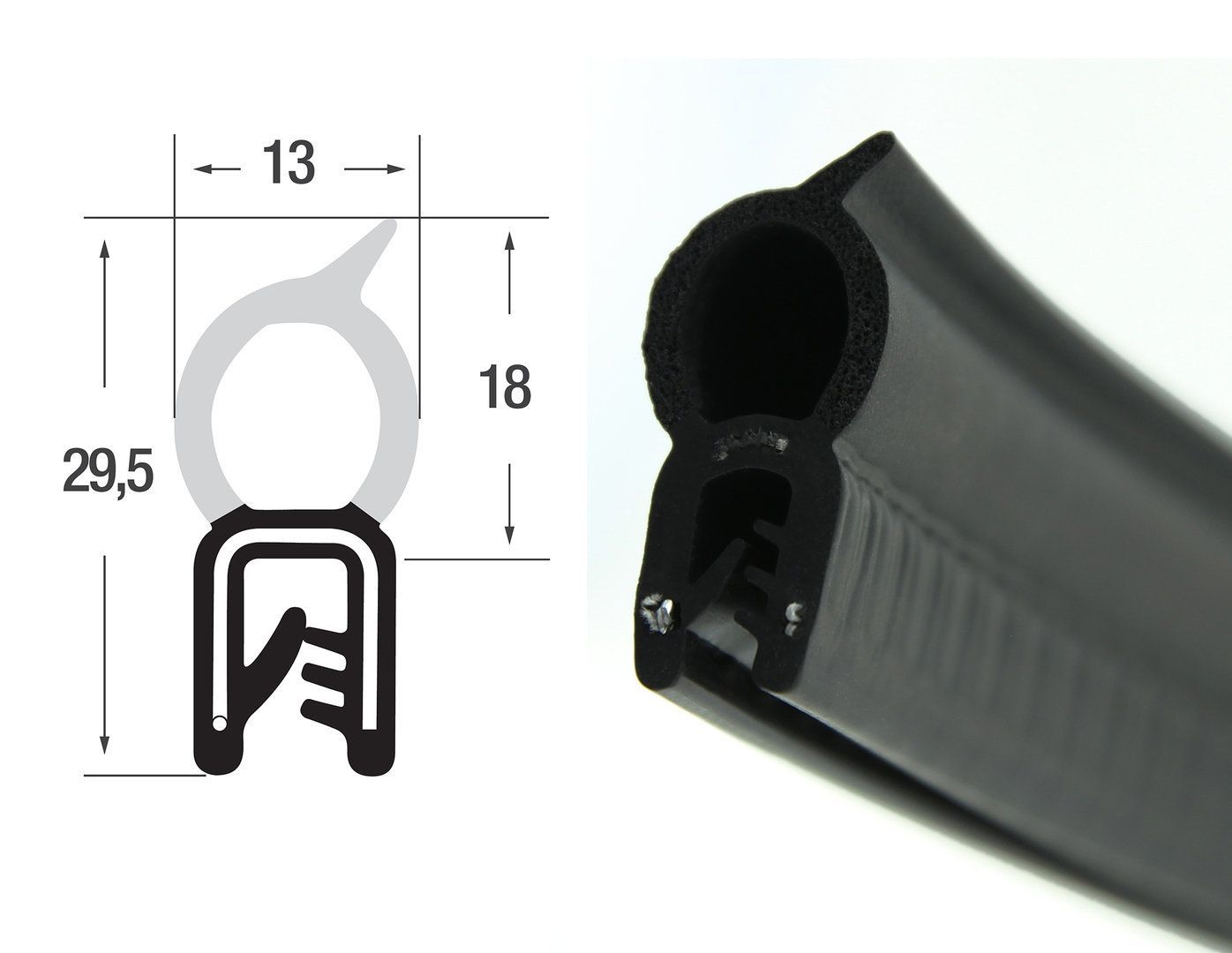 DO27 - EPDM Kantenschutz Dichtungs Profil Gummi Dichtung oben - Klemmbereich 1 - 2,5