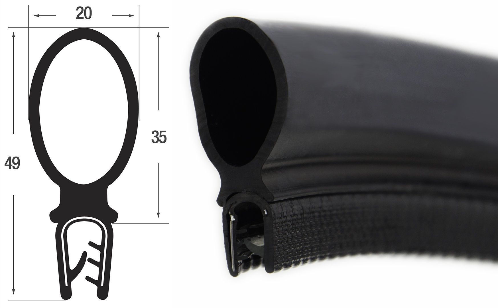 DO33 - PVC/ EPDM Kantenschutz Dichtungs Profil Gummi Dichtung oben - Klemmbereich 2