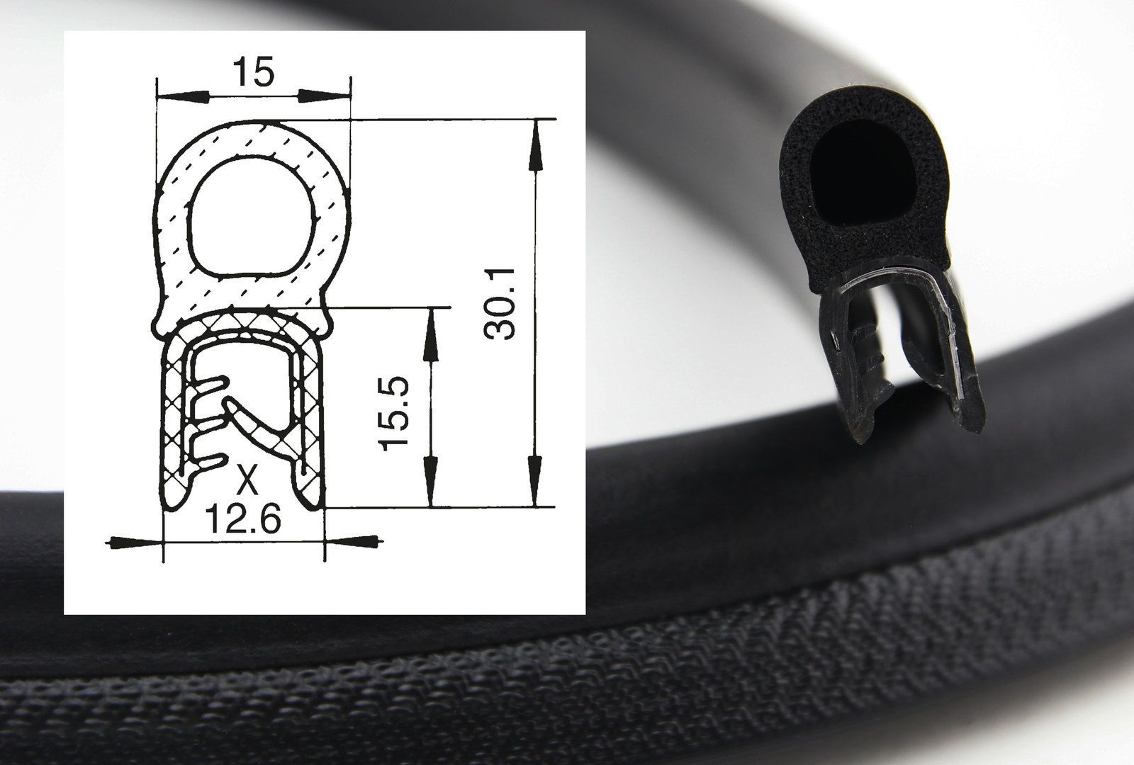 • DO15 - PVC/ EPDM Kantenschutz Dichtungs Profil Gummi Dichtung oben - Klemmbereich 1