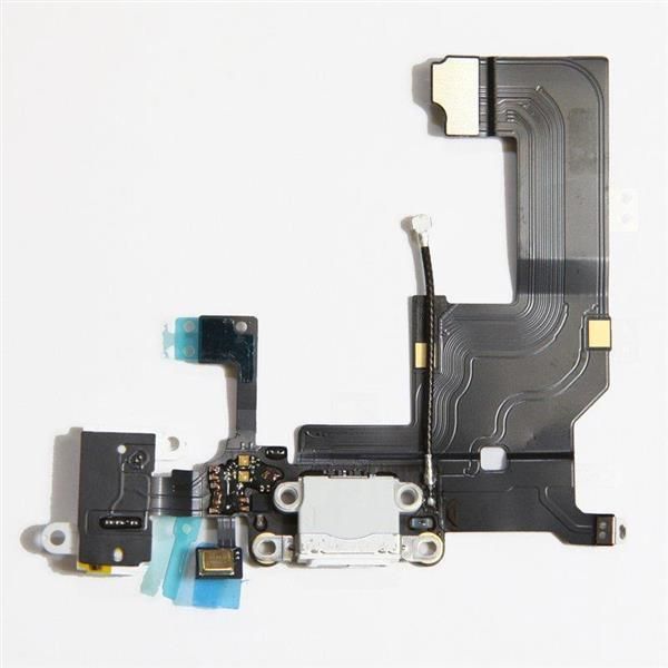 Apple Dock-Anschluss mit Kopfhörer-Antennen-Anschluss für das iPhone 5 - Weiss/ Silber