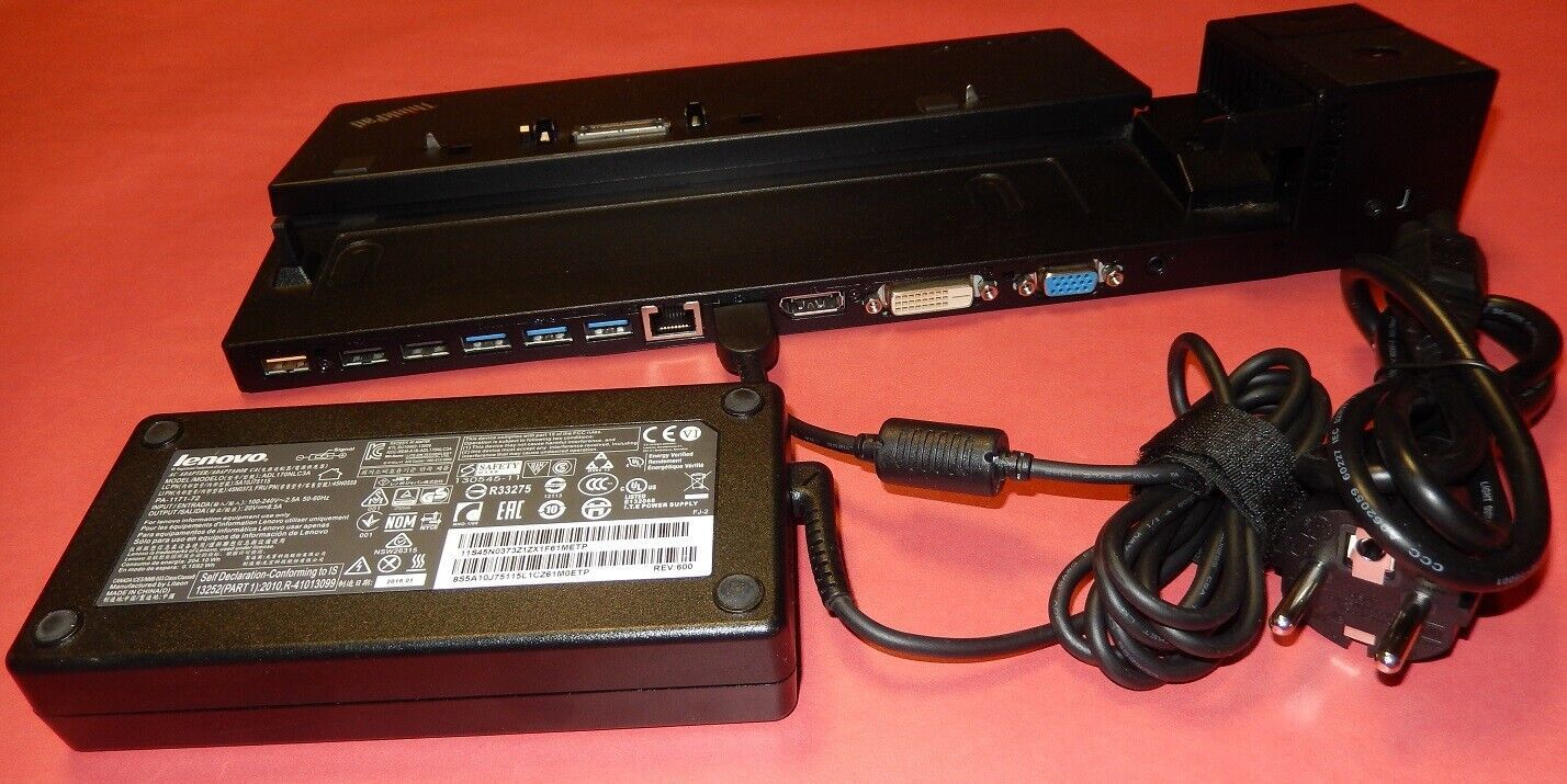 Lenovo DockingStation ThinkPad Pro Dock 40A1 immer mit 2x Schlüssel mit oder ohne Netzteil (Netzteil Original Lenovo + Stromkabel) Der gezeigte Zustand des Gerätes kann abweichen. Bitte beachten Sie das Kratzer am Gehäuse sowie Abriebstellen bei Gebrauchtgeräten zu erwarten sind. für folgende Modell