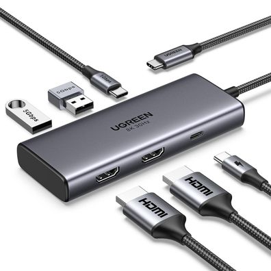 • Ugreen CM615 USB-C, DisplayPorrt, HDMI, RJ45 Multifunktionsadapter – Grau mit