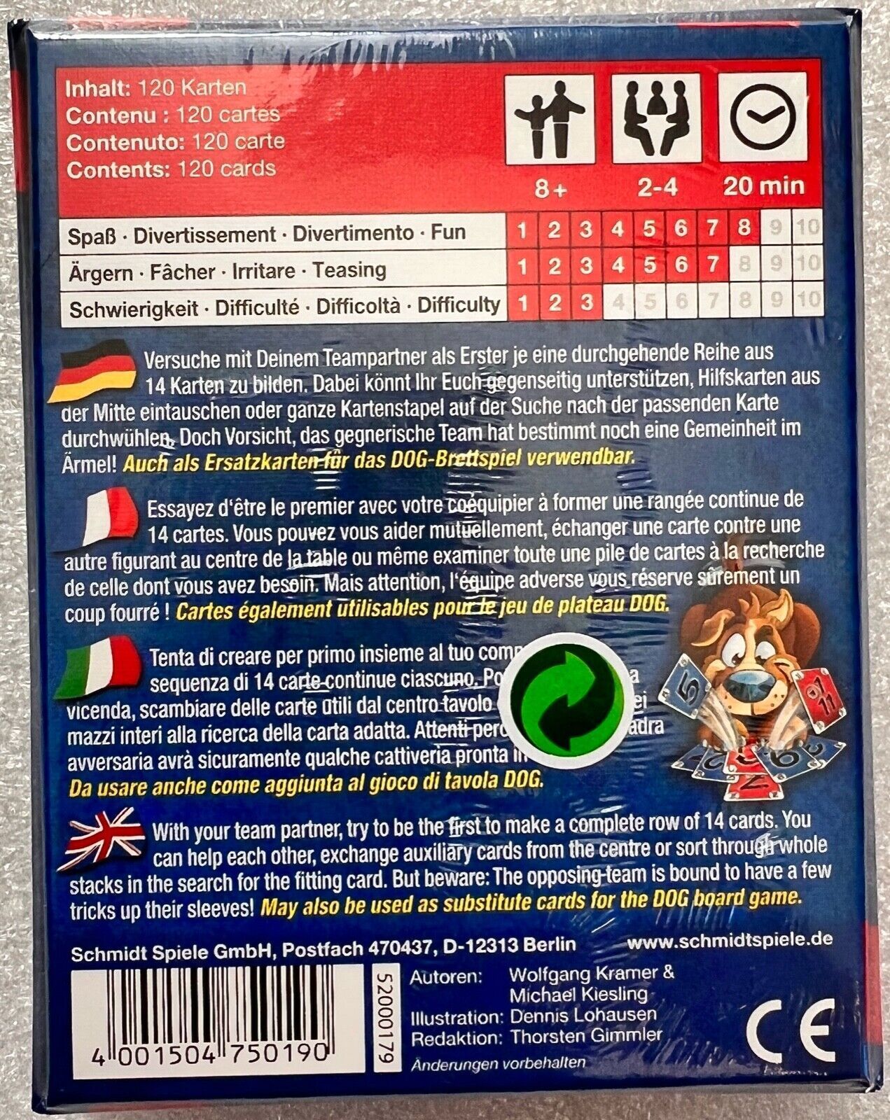 Dog Cards Schmidt Spiele Familienspiel Kartenspiel Kinderspiel Legespiel 75019