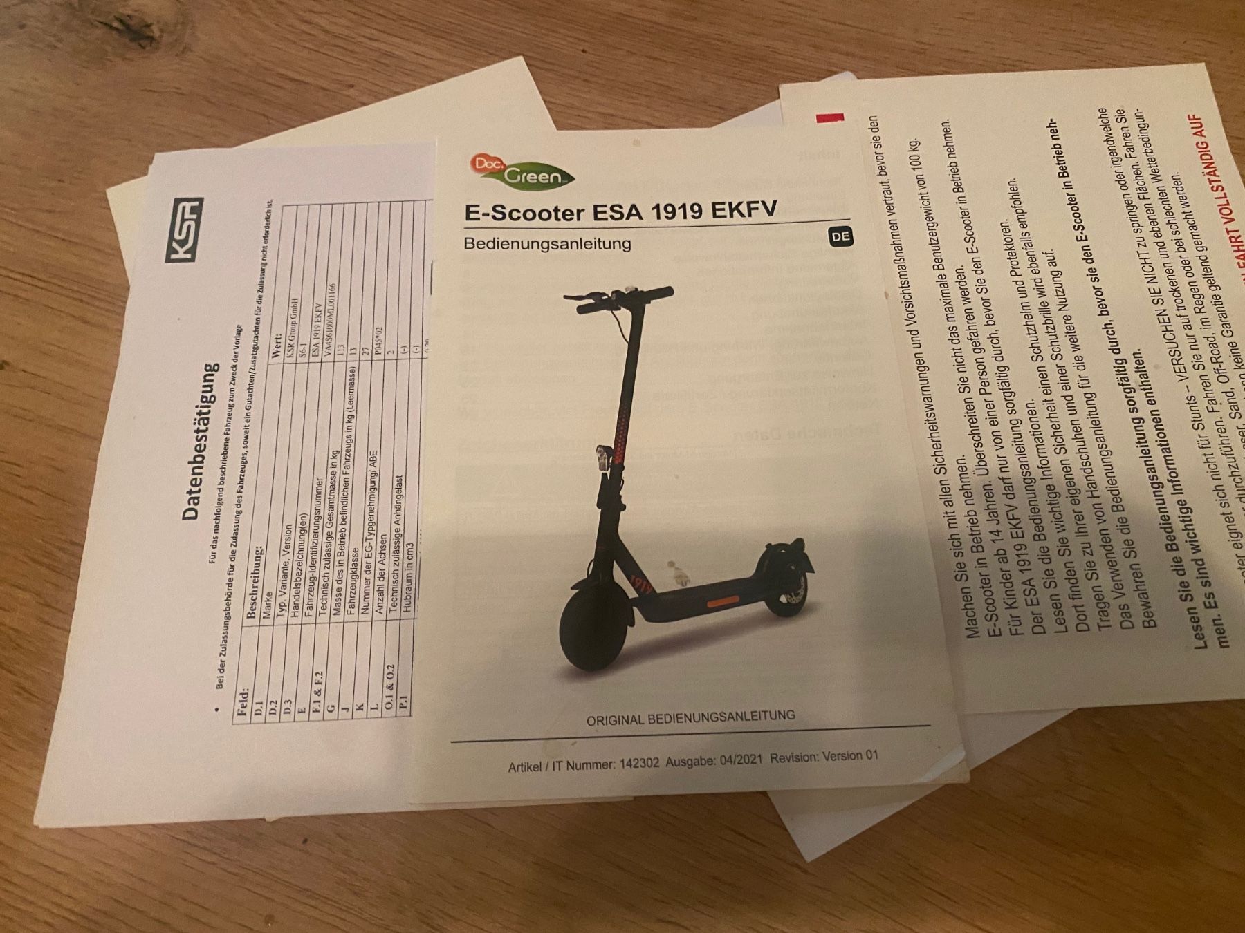 Dog green e Scooter ESA 1919 (KSR/Lidl) mit defekt aus 2021