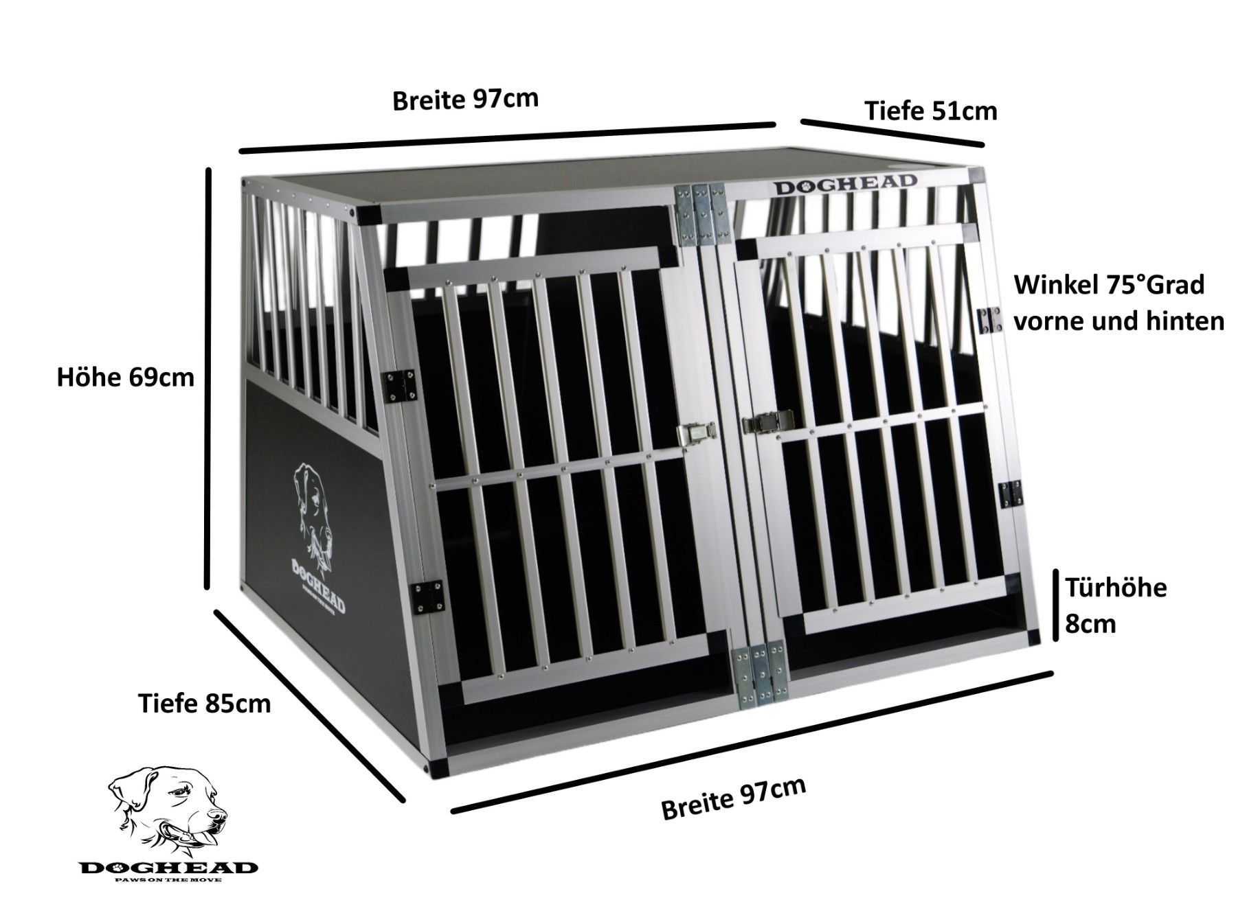Doghead Hundetransportbox Alu 97x85x69 DG Eco Neu Hundebox Hundekäfig Transportbox