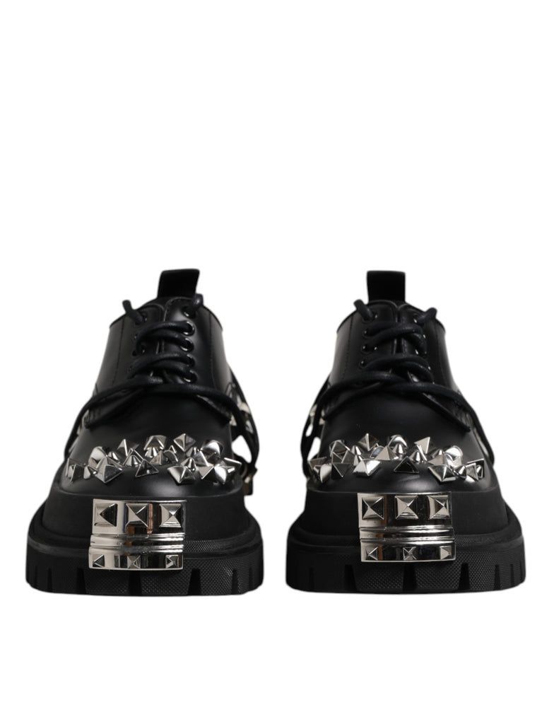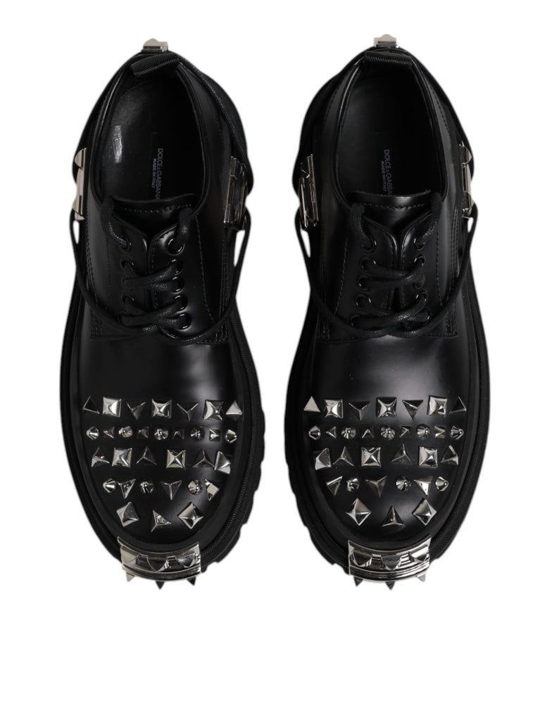 Dolce & Gabbana Dolce & Gabbana Black Leather Embellished Trekking Derby Shoes