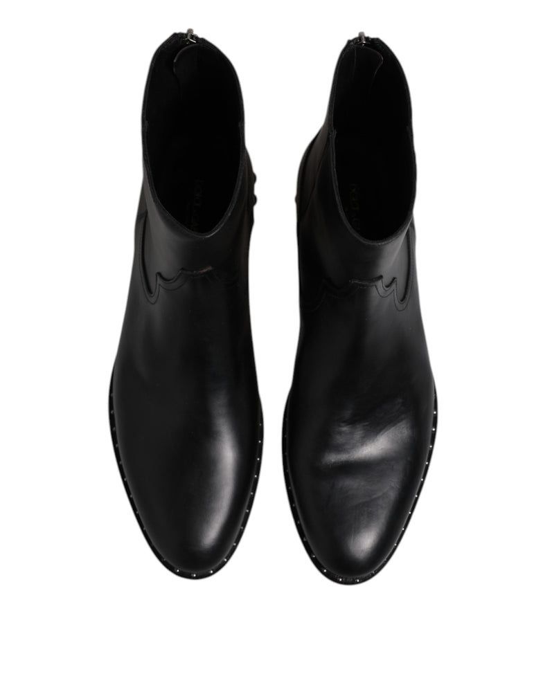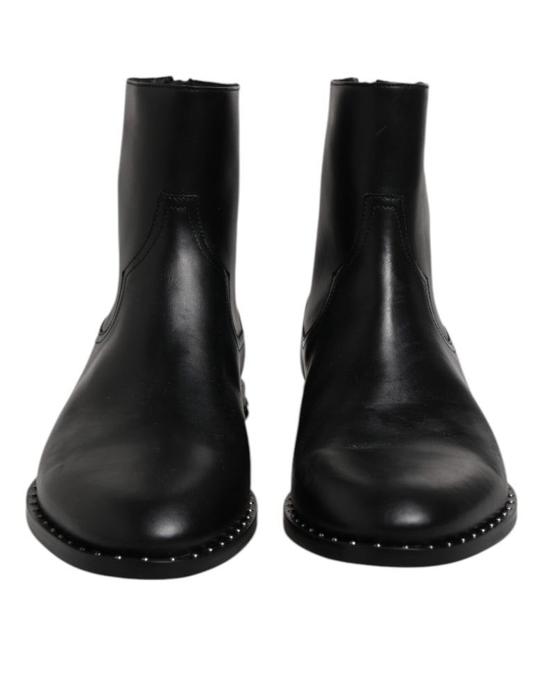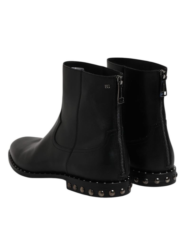 Dolce & Gabbana Dolce & Gabbana Black Leather Logo Ankle Boots Studded Shoes
