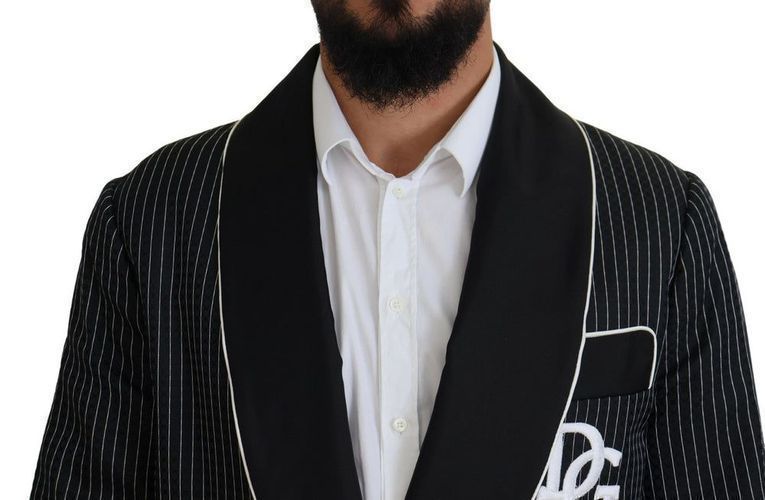 Dolce & Gabbana Dolce & Gabbana Black Robe Striped DG Patch Jacket Men Blazer