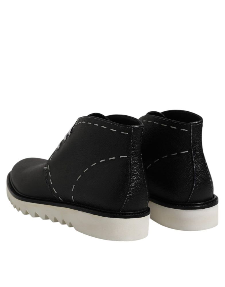 Dolce & Gabbana Dolce & Gabbana Black White Leather Ankle Boots Shoes