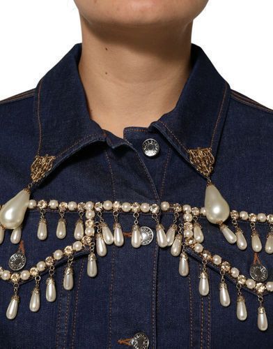 Dolce & Gabbana Dolce & Gabbana Blue Cotton Denim Crystal Embellished Jacket
