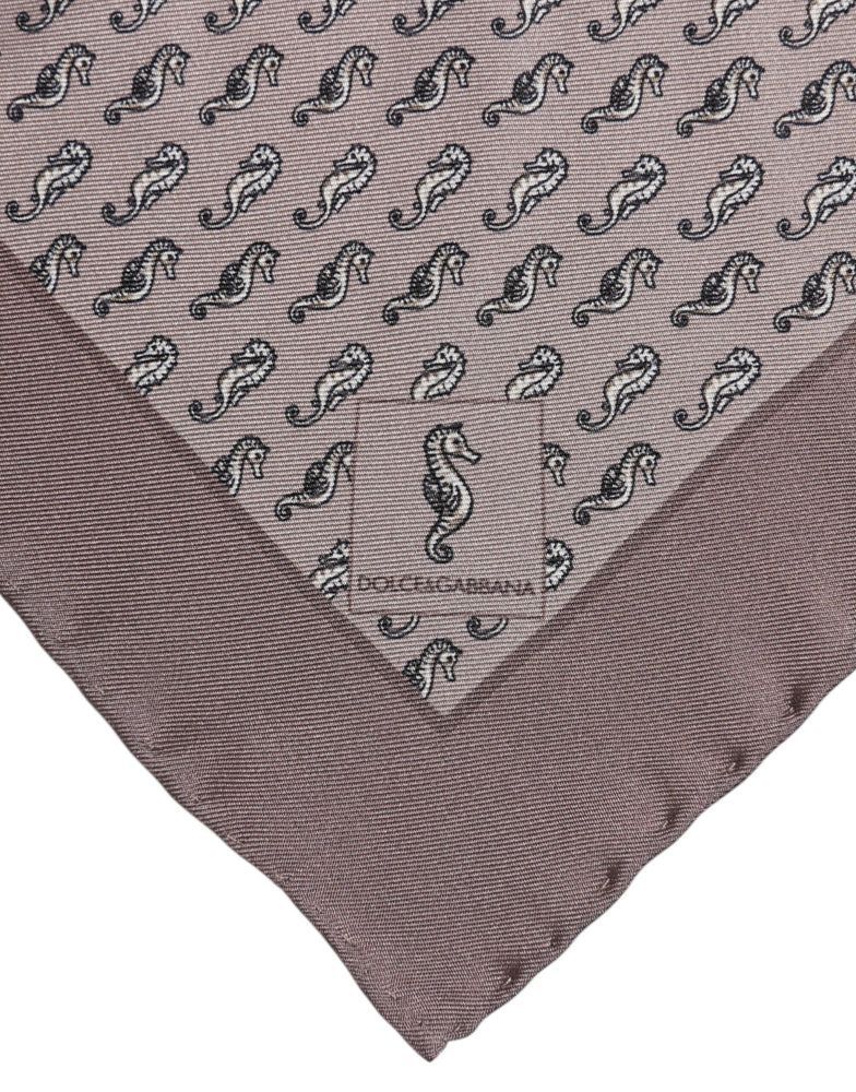 Dolce & Gabbana Dolce & Gabbana Brown Sea Horse Silk Square Foulard Scarf