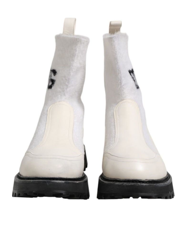 Dolce & Gabbana Dolce & Gabbana White Beige DG Logo Mid Calf Boots Shoes