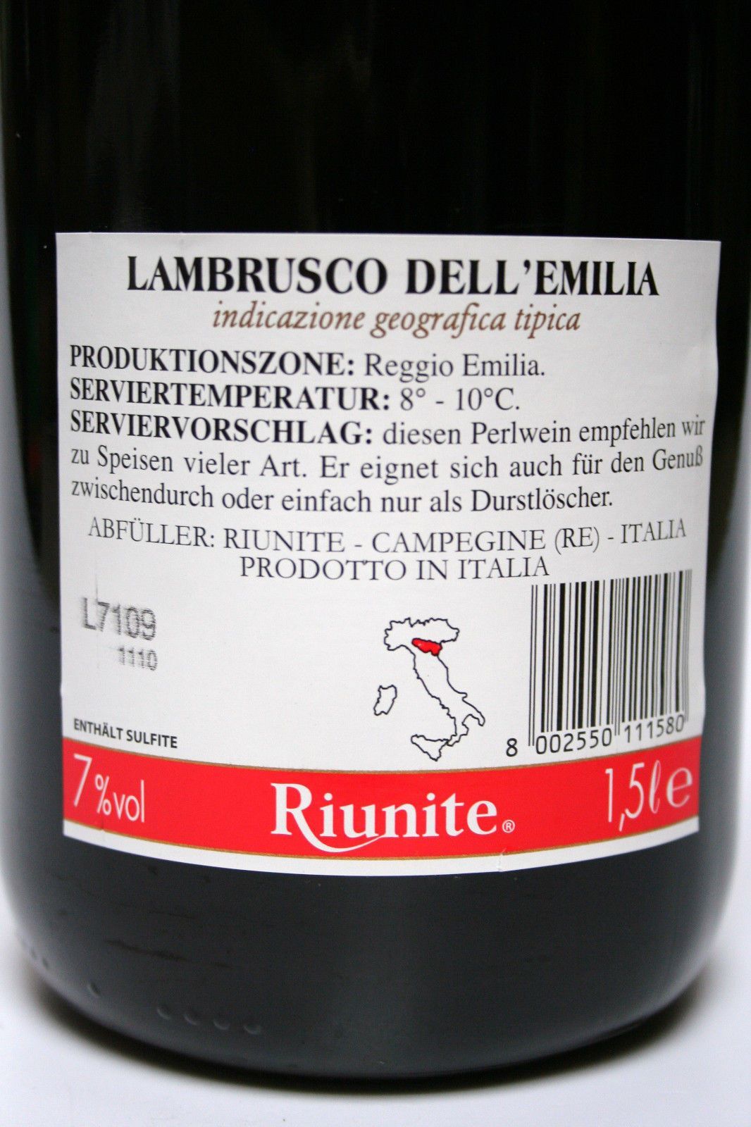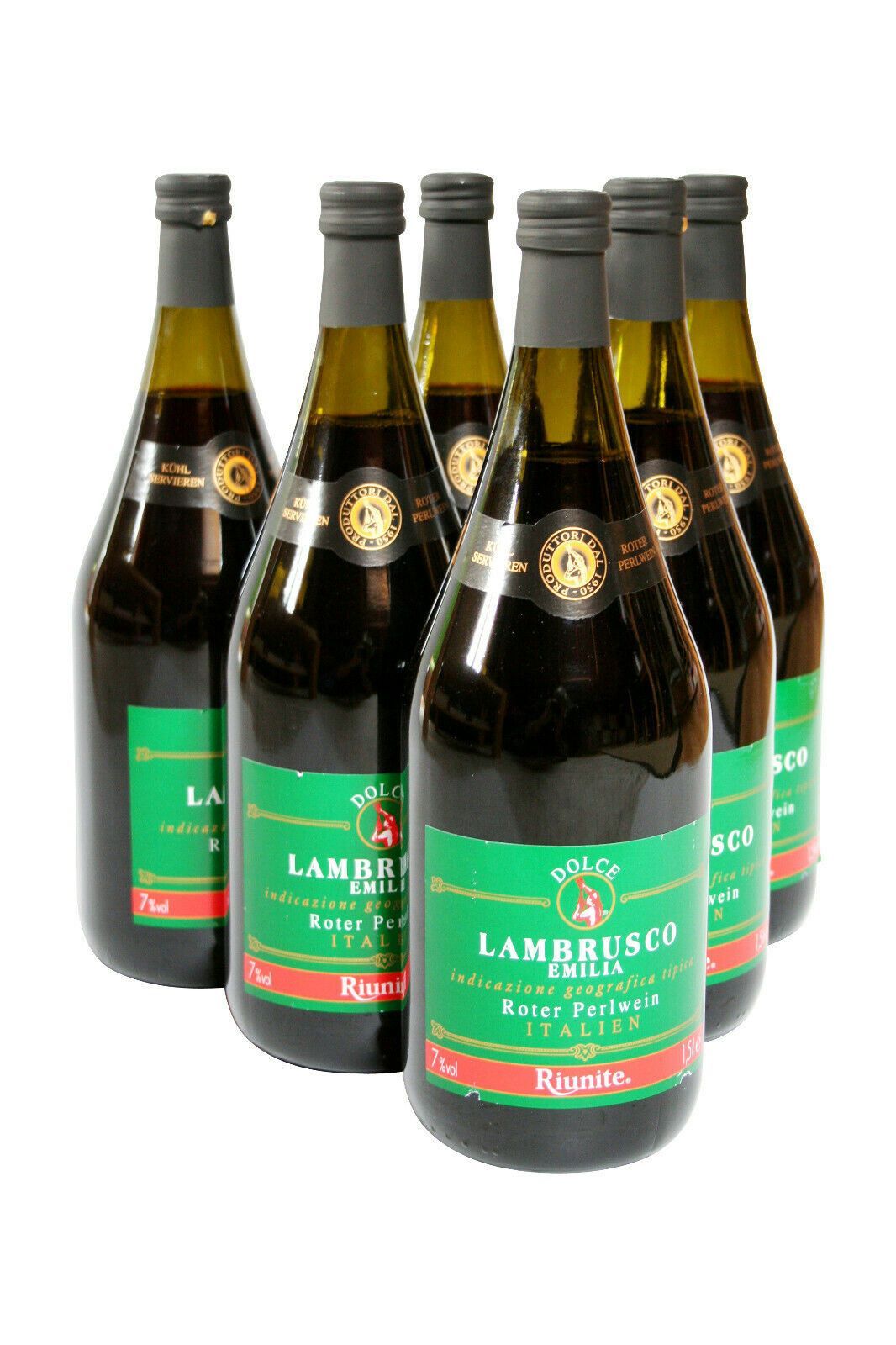 Cantine Riunite Dolce Lambrusco Emilia Riunite Perlwein 7%süß rot Italien 6x1,5l Cantine