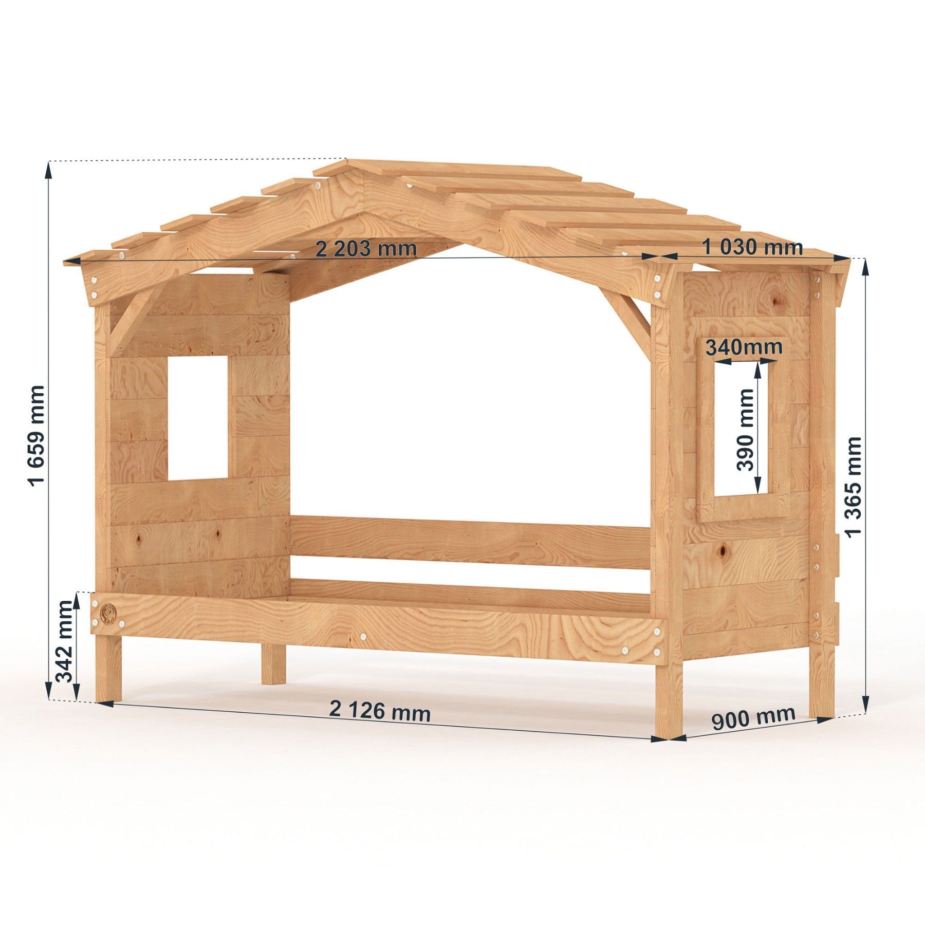 DOLCE NIDO Kinderbett, Spielbett, Jugendbett, Spielhaus, 100% natur