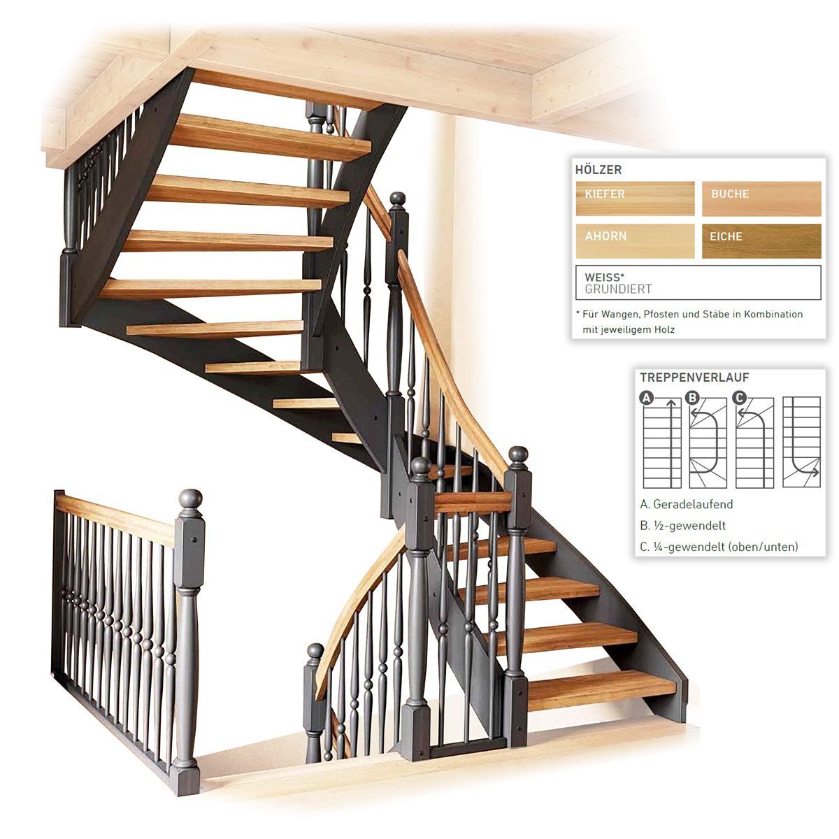 Dolle Dolle Geschosstreppe Estoril 1/2-gewendelt 252-280cm GH Eiche versiegelt Gelaender H