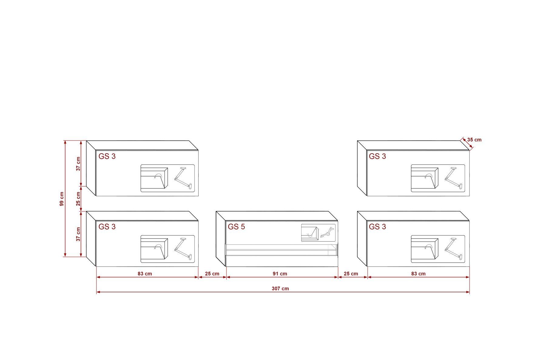 Dolly E3 Möbel für Wohnzimmer Wohnwand Mediawand Schrankwand Wohnschrank