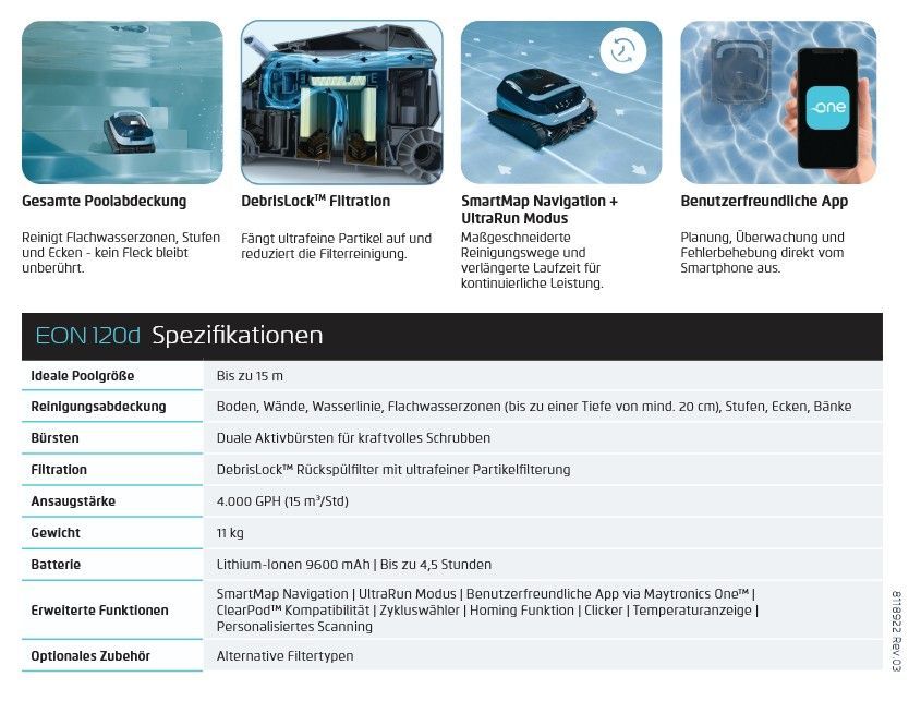 Dolphin EON 120d – kabelloser Akku-Poolroboter mit 3D-SmartMap-Navigation
