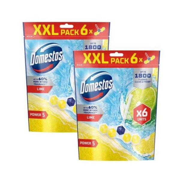 Domestos Power5 Toilette Erfrischungsblock (12x50g) - Experience the Domestos Power5 Toilet Freshener Block in the convenient 12 x 50g bulk pack and enjoy long-lasting freshness in your bathroom. This highly effective cleaner is specially designed for toilets and, thanks to its precise dosing system