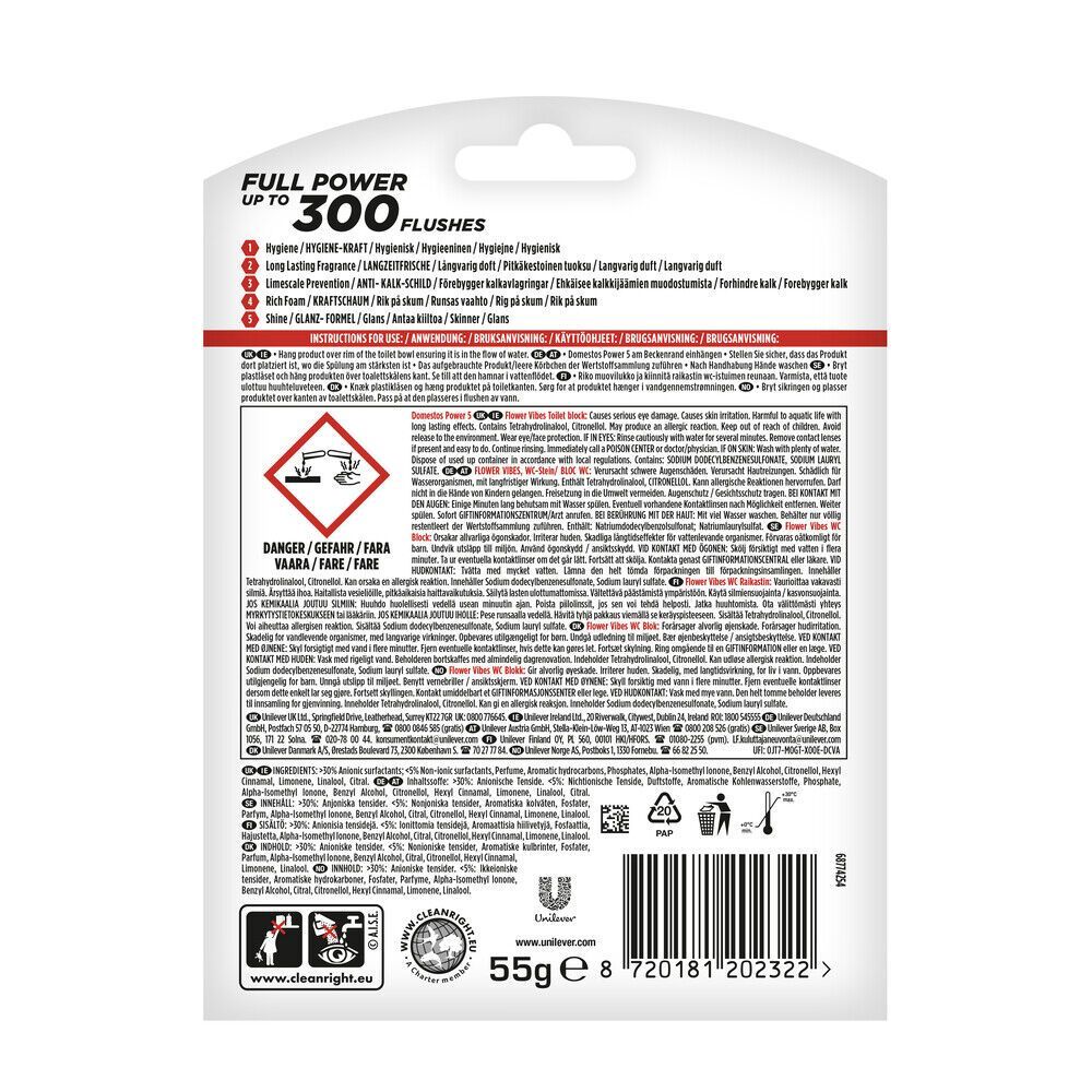 Domestos Domestos WC-Stein Power 5 Flower Vibes LTE 55g 9er Pack (Gr. Normal)
