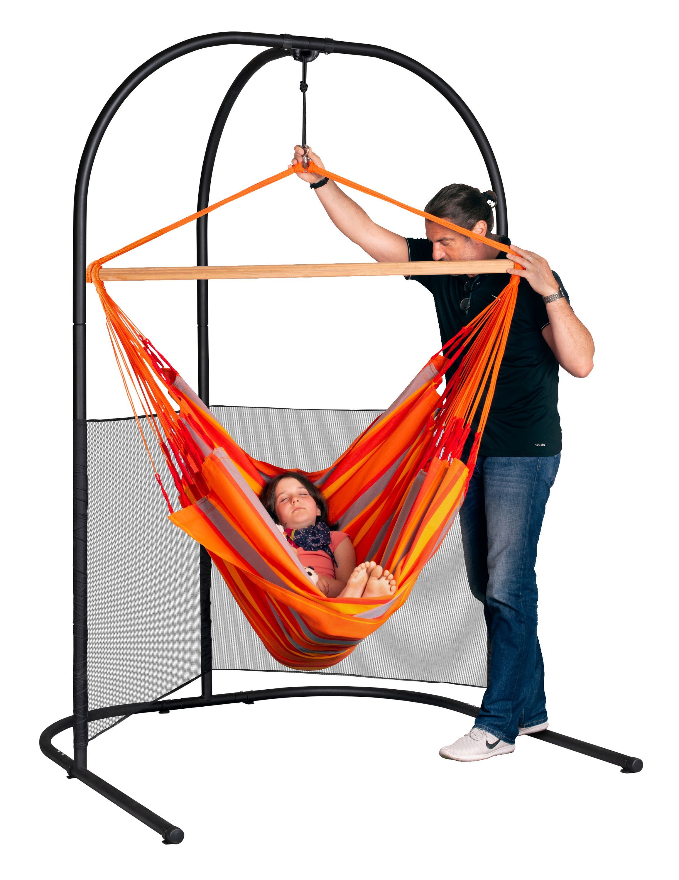 DOMINGO KINGSIZE Hängesessel mit Arcada Anthracite – Verzinktes Stahl-Gestell von LA SIESTA Hängematte Produktdetails: • Maße: 210 x 130 cm • Tragkraft. 160 kg • Material: Polyprophylen • Drehwirbel inklusive Stahl-Gestell Produktdetails: • Gesamthöhe: 221 cm • Standfläche: 155 x 151 cm • Belastbarkeit: 160 kg • Herstellungsland: China • Materialbeschreibung: Stahl (verzinkt)