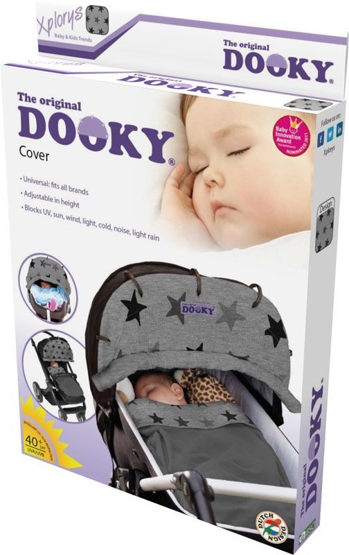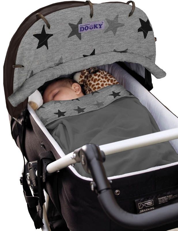 Dooky Design Sonnenschutz für Kinderwagen Sonnenschirm Graue Sterne Grey Stars