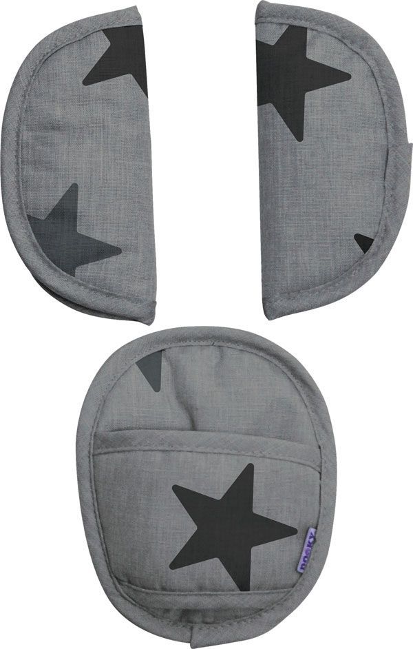 Dooky Gurtpolster für Babyschalen Überzug für Sicherheitsgurt Grey Stars