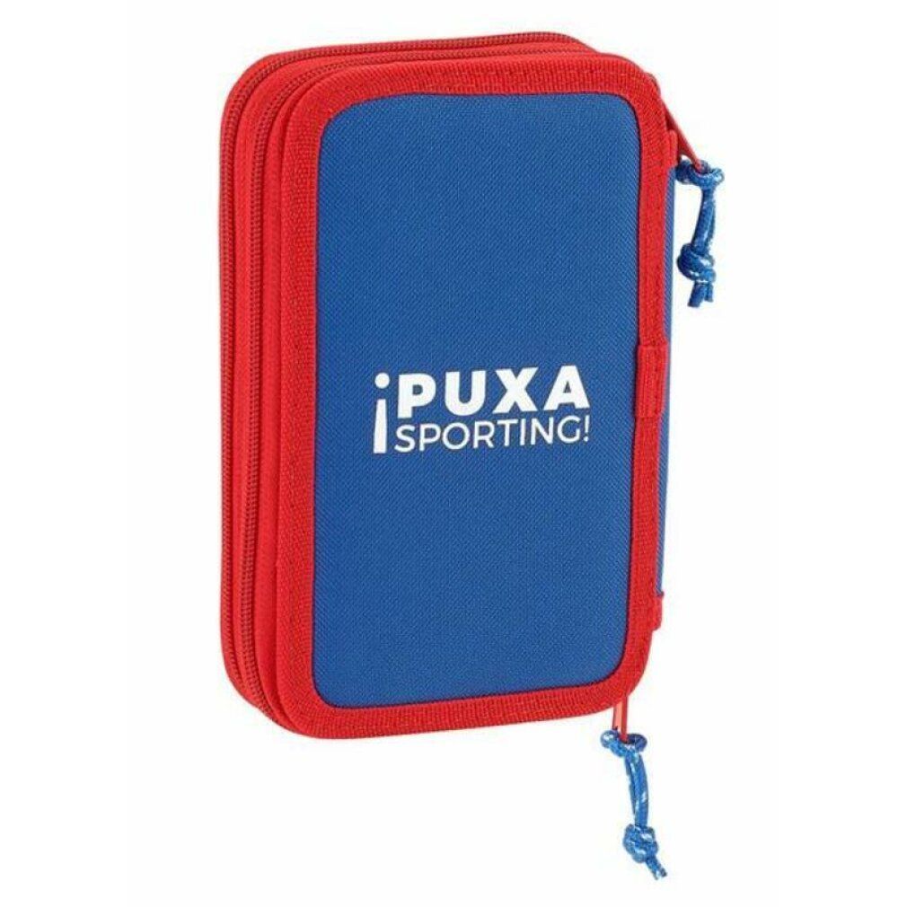Doppel-Federtasche Real Sporting de Gijón Weiß Rot (28 pcs)
