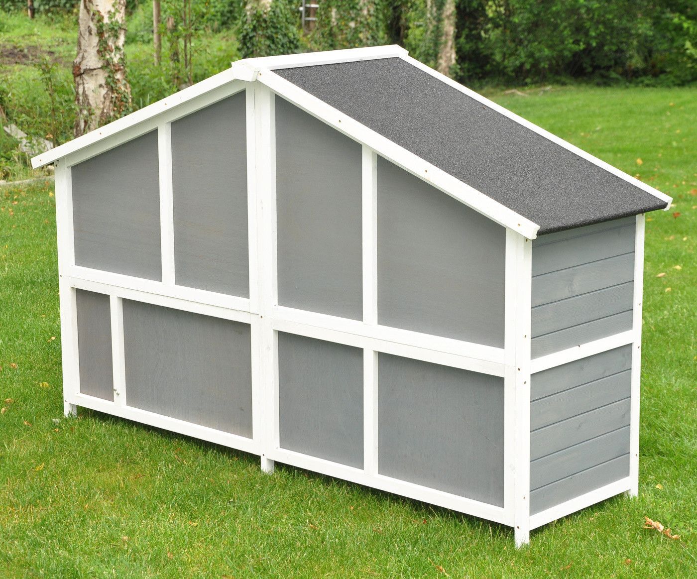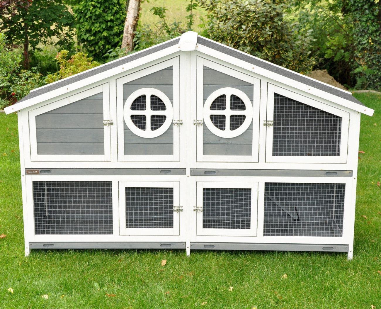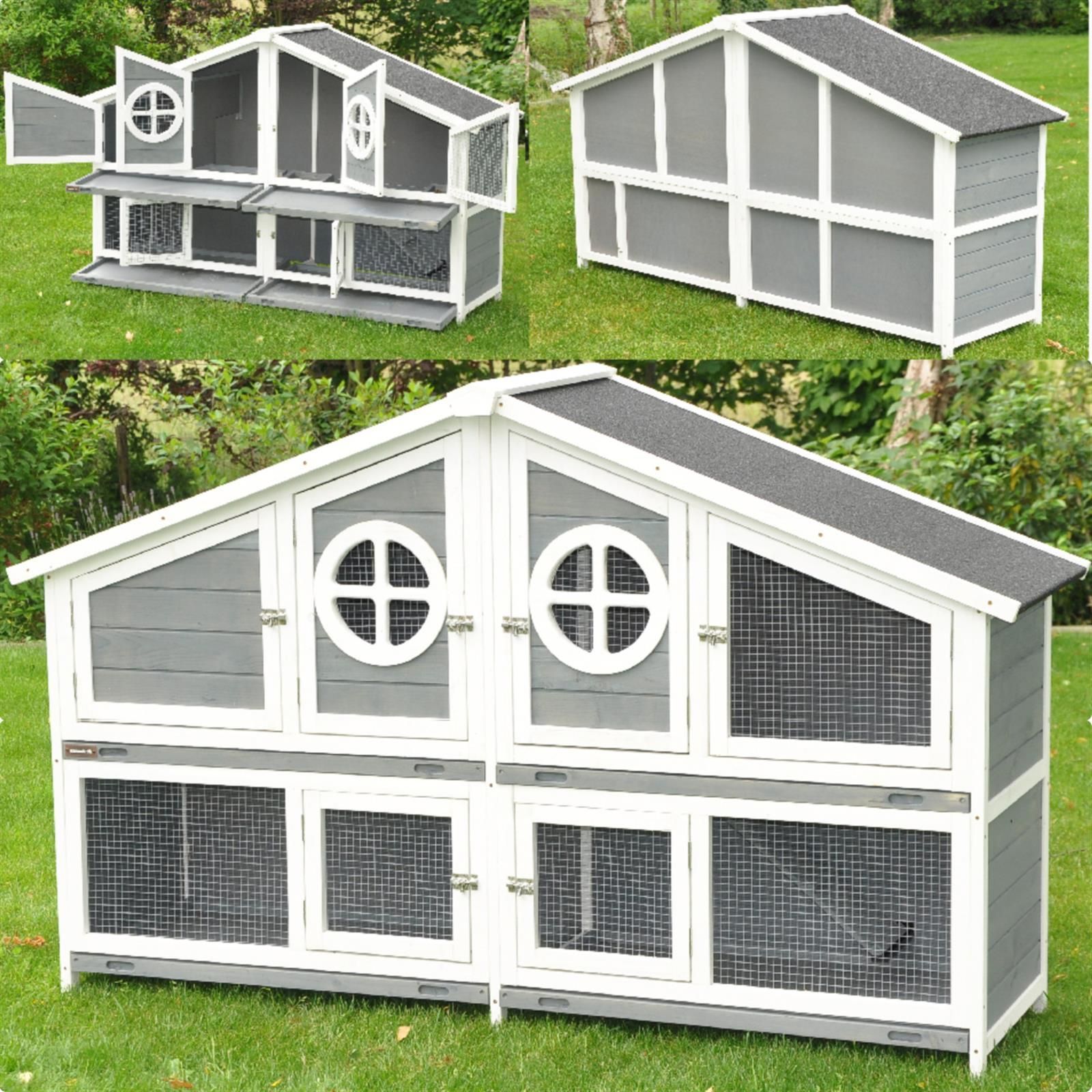 Nanook Doppel Hasenstall XXL Kaninchenstall Meerschweinchen Kleintierstall grau / weiß