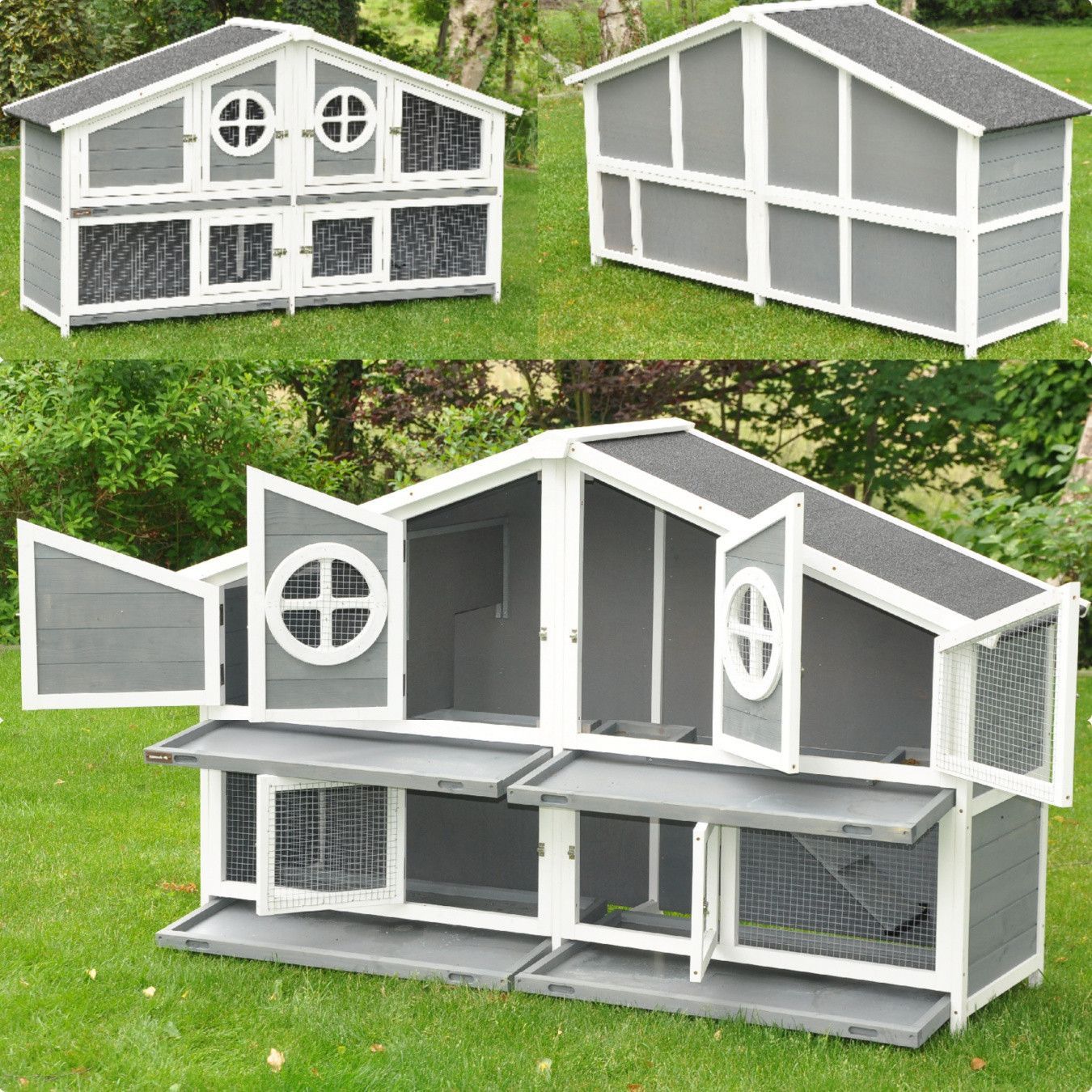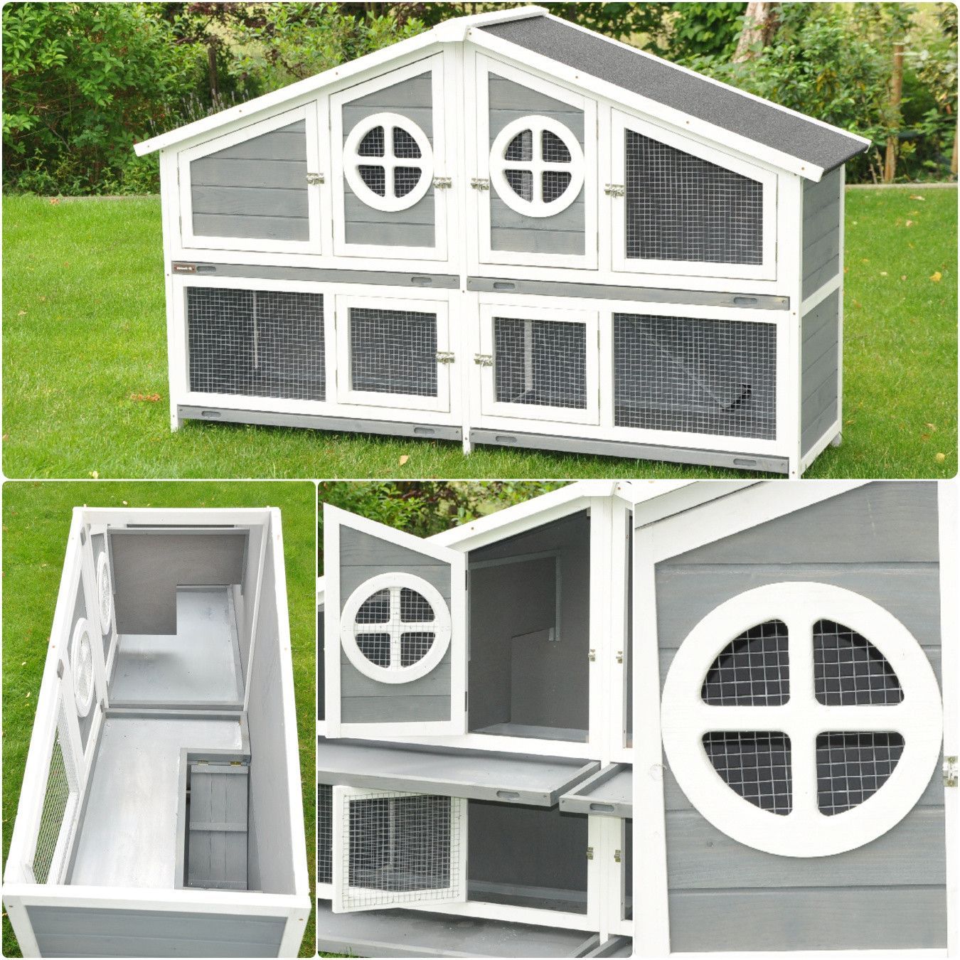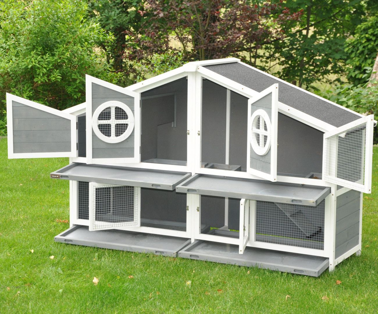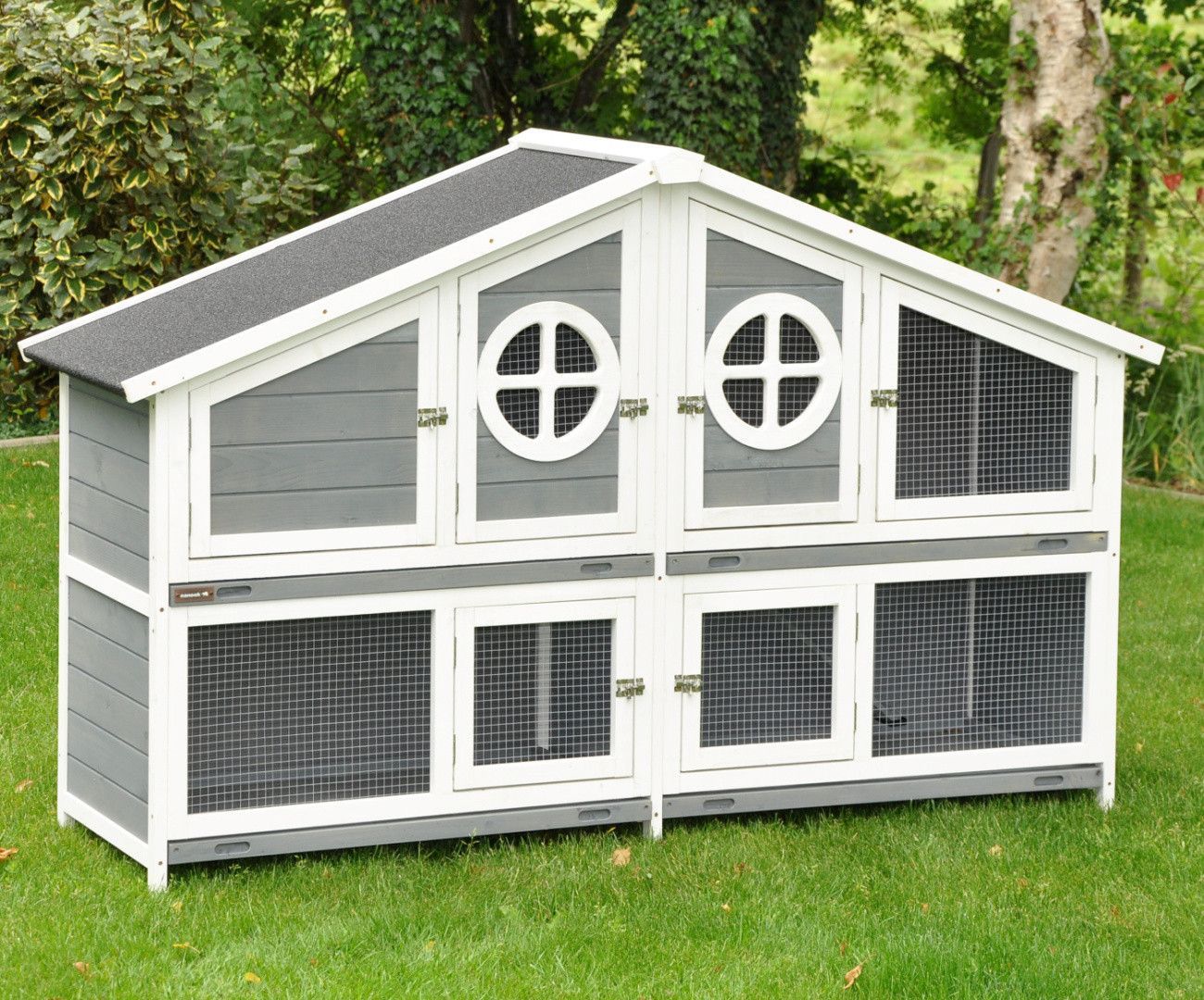 Nanook Doppel Hasenstall XXL Kaninchenstall Meerschweinchen Kleintierstall grau / weiß