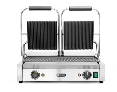• Hendi Kontaktgrill Doppelausführung mit oben gerillte und unten glatte Flächen