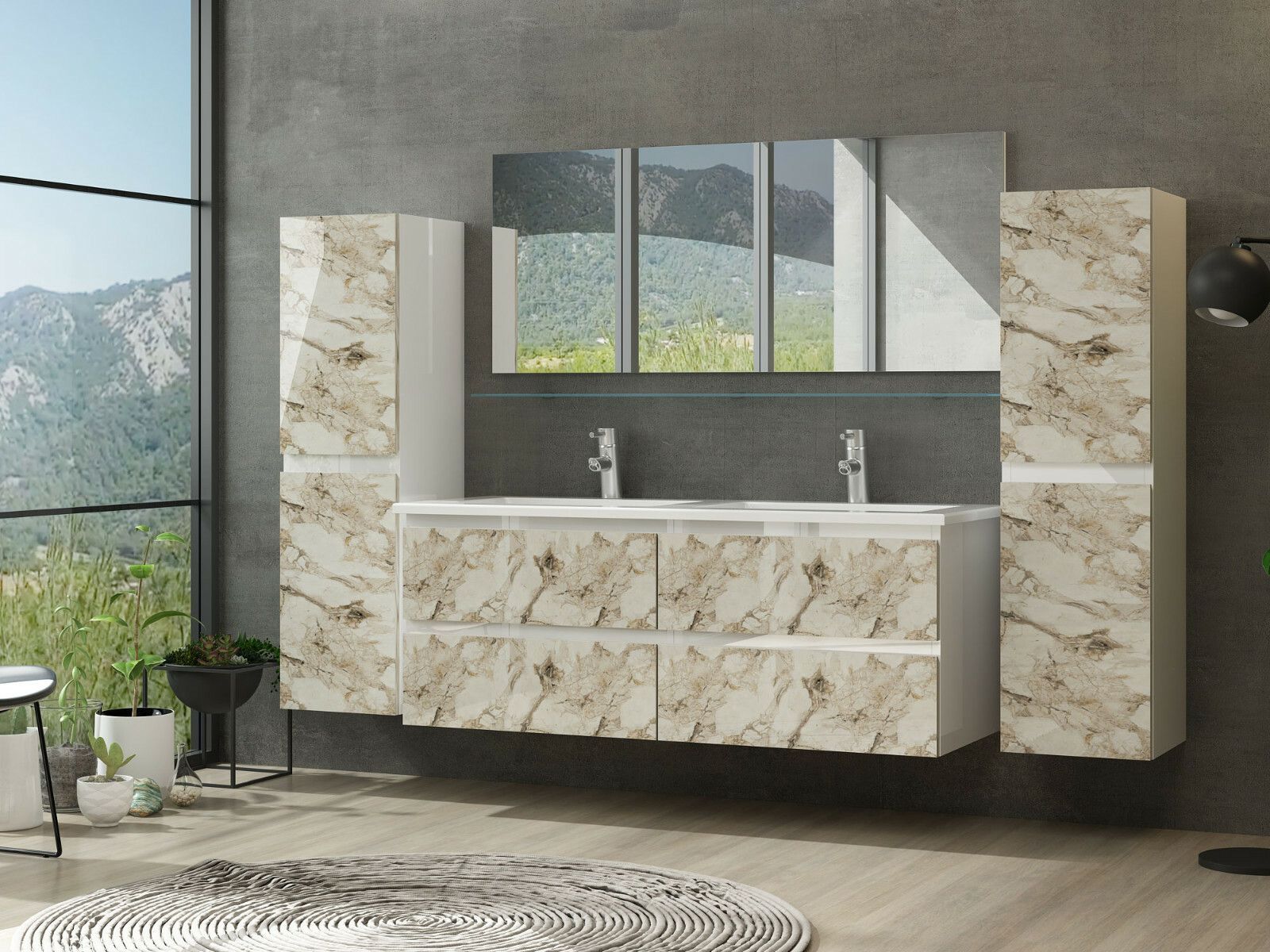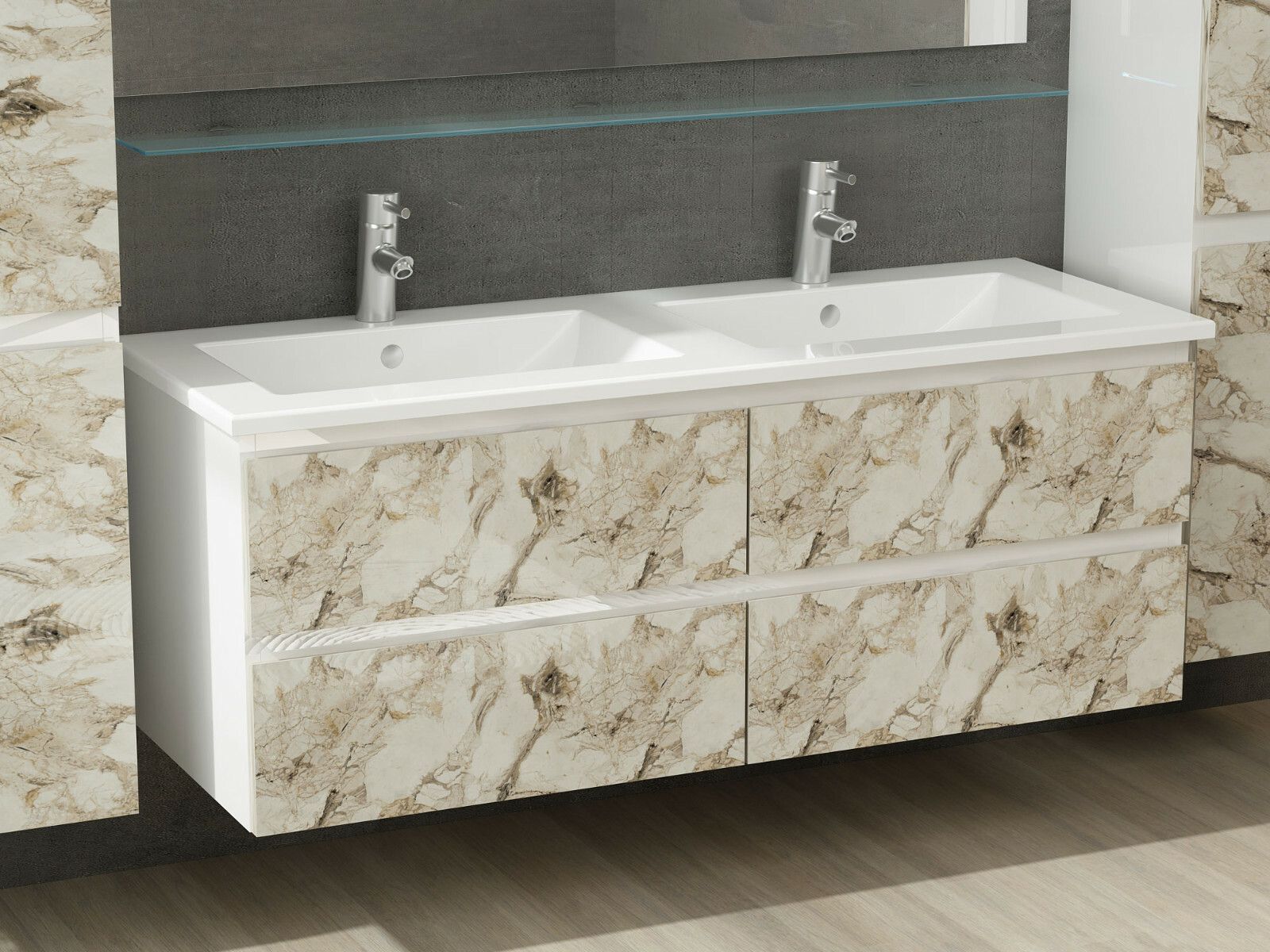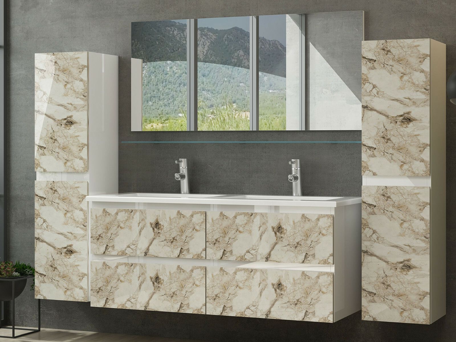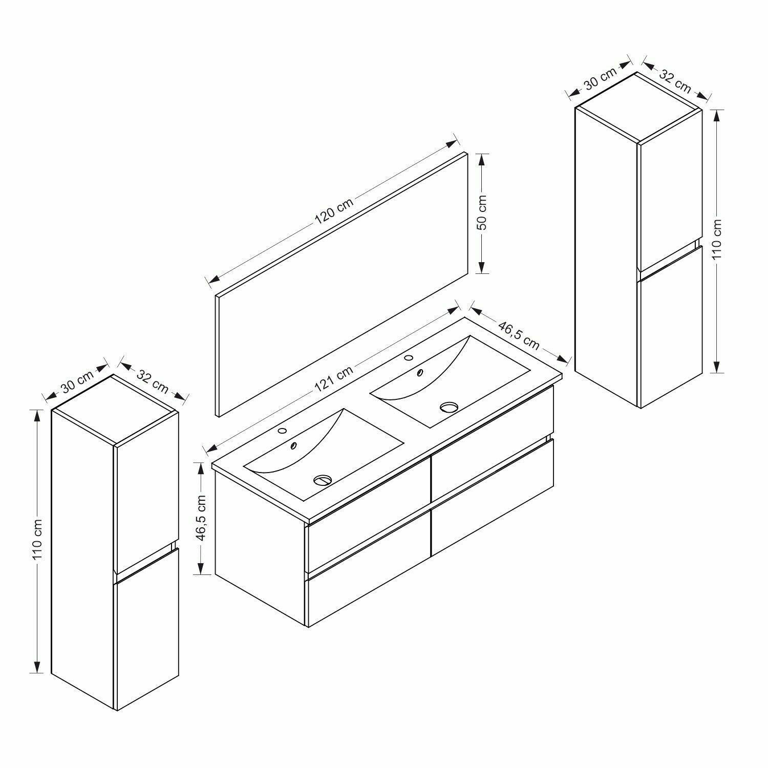 Doppel Waschbecken Badmöbel Set Weiss Hochglanz Badezimmermöbel 5 teilig Bad 120 cm
