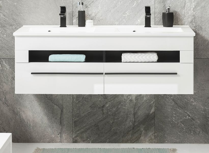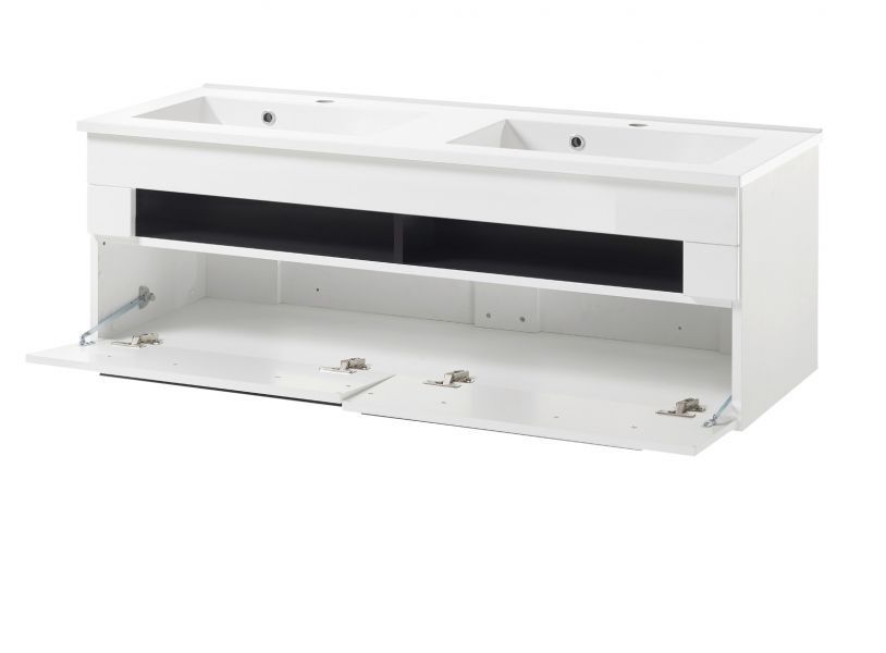 Doppel Waschtisch Set Unterschrank mit Waschbecken Hochglanz weiß 120 cm Design-D