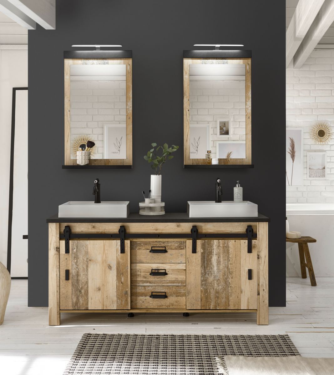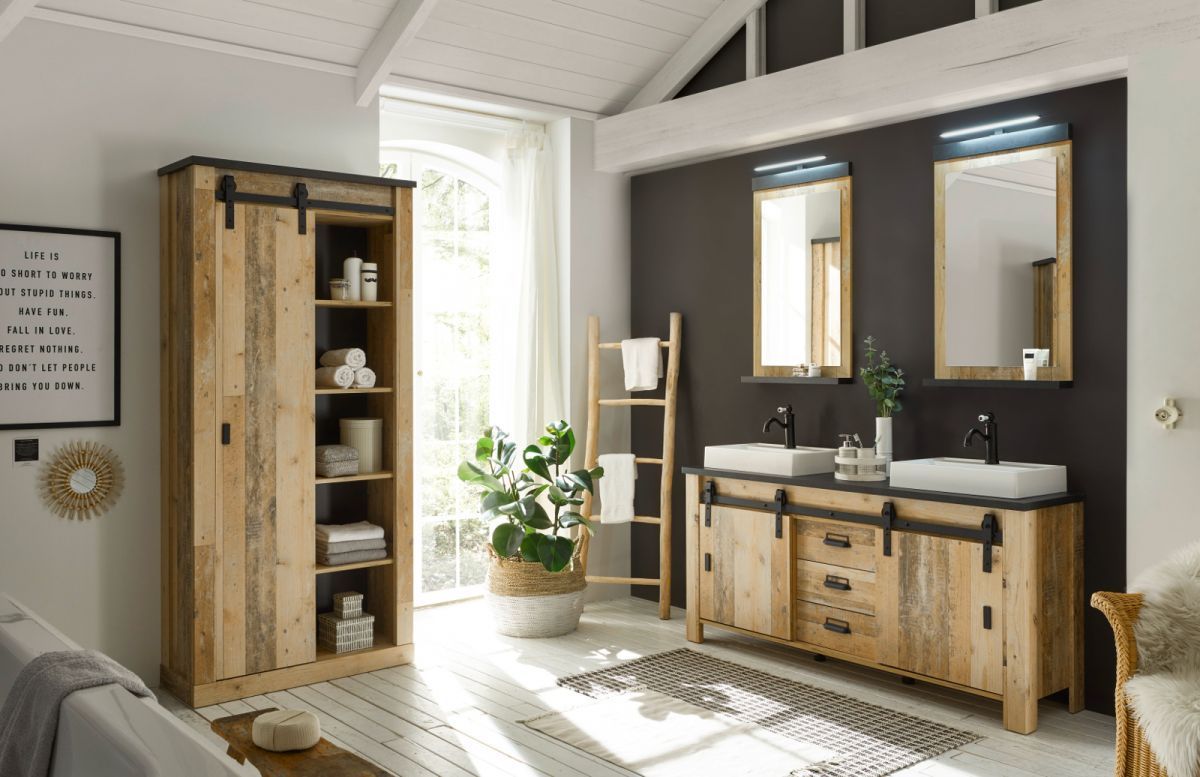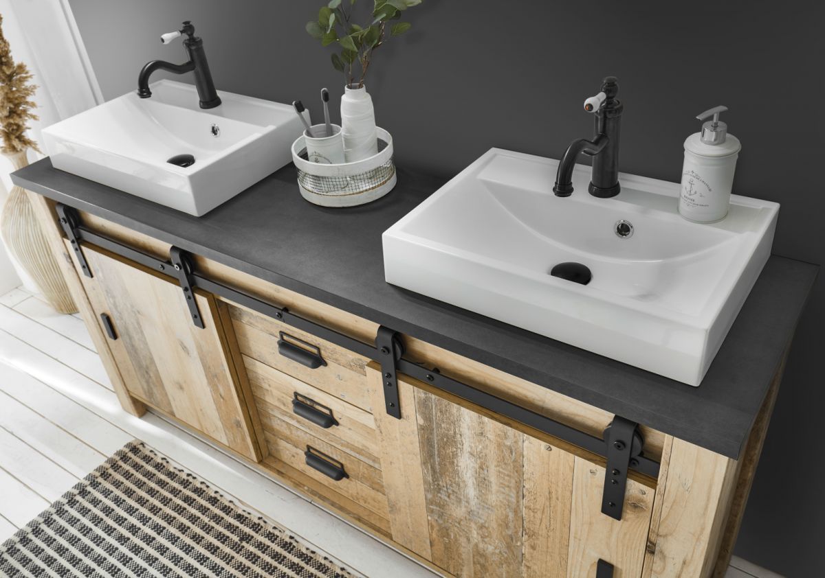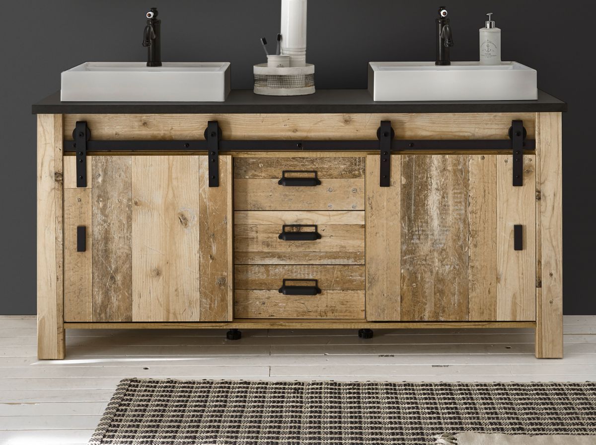 Doppel Waschtisch Waschbeckenunterschrank Set 2x Waschbecken Used Wood Vintage Stove