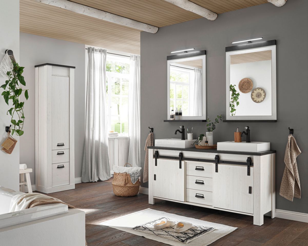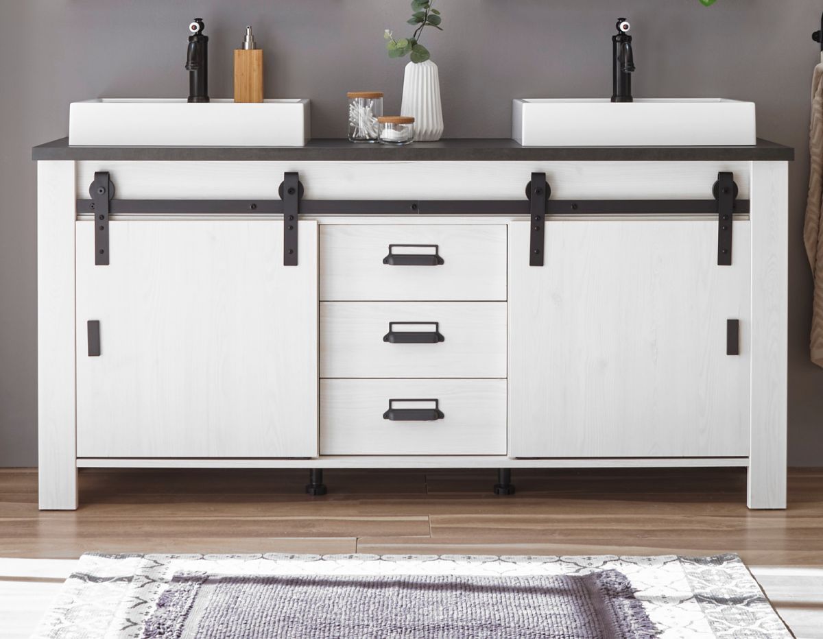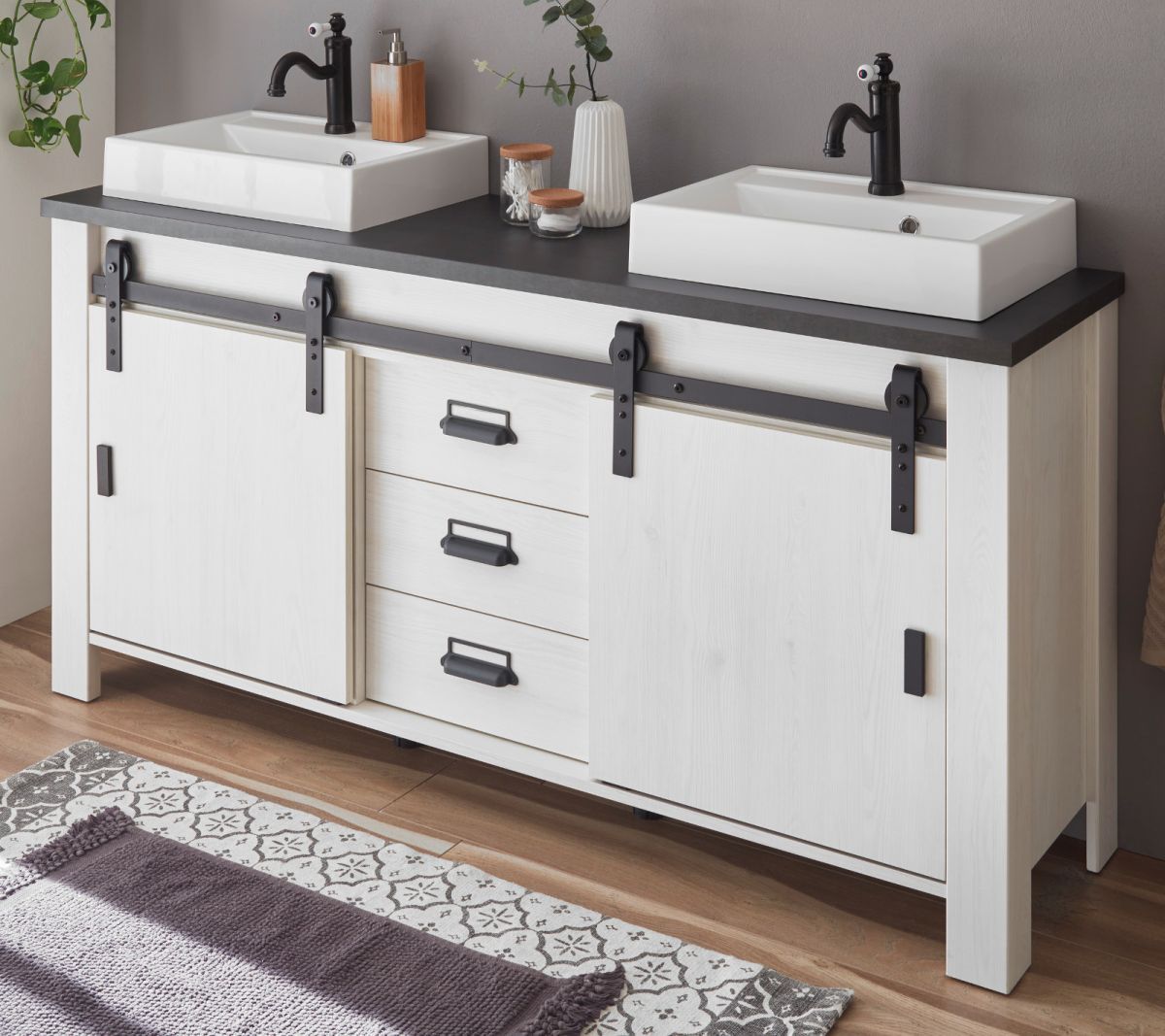 Doppel Waschtisch Waschbeckenunterschrank Set mit 2x Waschbecken weiß Landhaus Stove