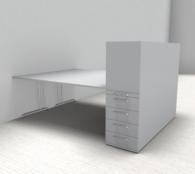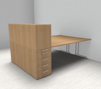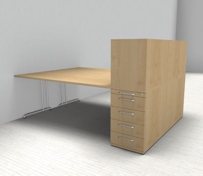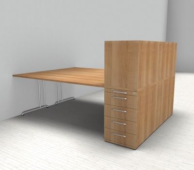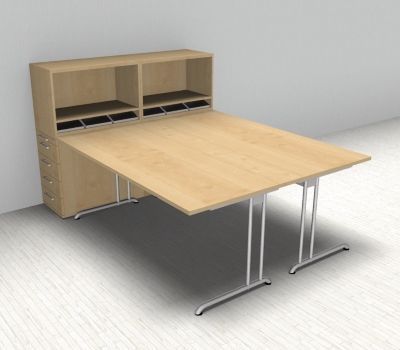 Doppelarbeitsplatz B24 Stellfläche 223 x 160 cm bestehend aus 2x Schreibtisch 180 cm mit C-Fuß-Gestell, 2x Anstellcontainer mit 4 Schubladen und 2x Aufsatzregal für Standcontainer. Dekor wählbar.