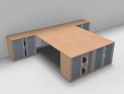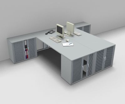 Doppelarbeitsplatz G24R mit 4 Rollladenschränke Schreibtische Schreibtischkombination